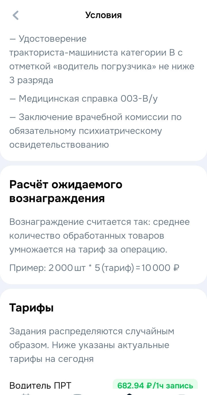 Ещё немного про ВБ. Говорю конкретно про Екб, потому что не знаю во всех ли городах такое, но от старших разных участков были ещё всякие предложения по работе. Это почасовая за 500р/ч, там как бы сошкой быть, делать что говорят: картон собрать и спустить с мезанина, склеить коробки для меза и наклеить адреса на мезанине. Штрафов нет. Графика нет, просто по потребности, подходить там к столу, узнавать нужны ли люди на часы. Потом куда-то на отгрузку, что там конкретно делать надо - не знаю. Но старший участка говорил что-то про 9к оплаты, штрафов тоже нет, но надо работать по графику 3/3 по 12ч. Можно выбрать работать в день или в ночь. И ещё на мезанин грузчиком. Надо на лифты и для штабилеров загонять гофры (примерно как сетки на озоне, ящик на колёсиках). Тоже штрафов нет, по 10к делают за 12ч, но из минуса сказали, что надо бегать между этажами. Получается мез 7 этажей и 1 человек контролирует спуск/подъем гофр с 1 по 4 этажи, другой с 5 по 7 и ещё захватывает 4 в помощь первому. График, сказали, по договорённости. Вроде как строгого нет, но и на час-два нельзя, часов 8 отработать, если встал на эту позицию.
