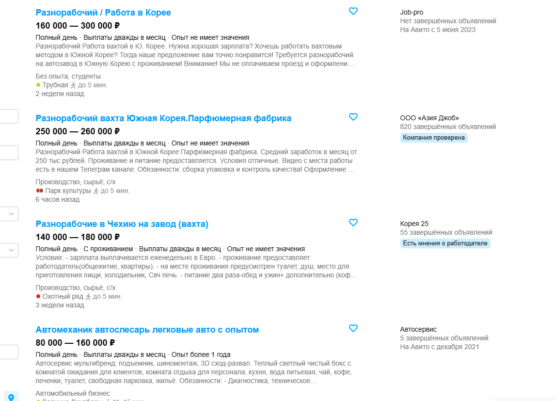 >>2738400 Хз, всё возможно, не знаю, проверяй, могу сказать как было в 19 году, до пандемии, кенты ездили, через контору "Кореясибирь" или раздельно писалось, в ВК есть группа, зэпэп 90к, трёхразовое питание, жилье, билеты бесплатные(по факту сняли их с первой зарплаты), там они с кучей русских назнакомились, им всё пояснили че делать и как, чтобы норм бабки заработать, контору кинули, уволились, хз как, наверн прост хуй положили и всё, вот этот момент не уточнял у них, ну и через вацапы начали устраиваться кто че куда, кто на заводы, кто на стройке, кто рыбу кидать, рис собирать, заработали нормально 200 тысяч за месяц выходило