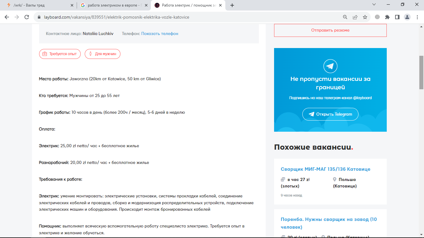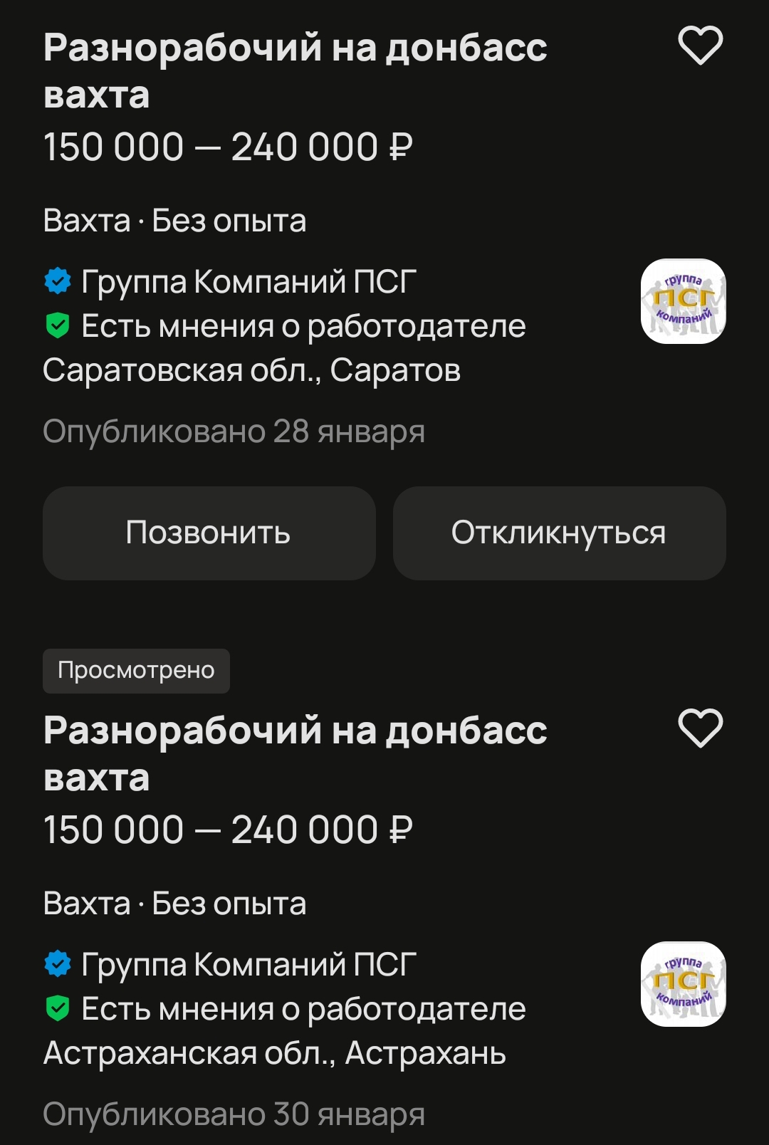 >>3165296 Пчел выше про инженерскую должность писал. >>3165297 Ну когда такое предлагают, то это стопроцентный наеб в оч. сомнительных конторах. Тем не менее, куча вакансий, где заводики честно предлагают поработать ИТР за 30-50 тысяч. Года-двух хватает, чтобы начали брать на вахты.