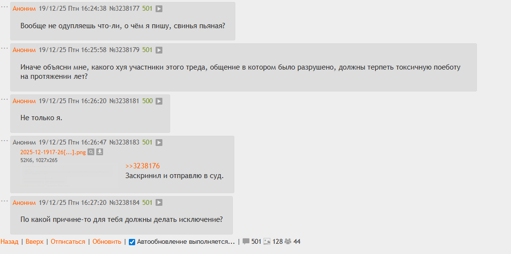 >>3238111 Про ебухание я особо не пишу, ебухают всякой хуергой вроде часиков административной, в плане работы я все знаю или разберусь на месте. Шиза может уже и есть, развилась от ХУЙни всякой. >>3238112 Да я пишу иногда позитивное, вы просто не ассоциируете-регистрируете сообщения между собой видимо. Хотя поводов позитивных очень мало сейчас. >>3238114 Пишут не новым, а старым. недоразумение тут именно от скорости реакции массовой. Например кто-то напишет что-то в рандомное время, буквально через 2-5сек начинается спам бесконечный. Буквально вот опять, минут 15 тишина была, написал чел проверить хуеблу - 9 человек за <1мин среагировали. Это надо пиликалки все включенными иметь + видимо в этот чат нонстоп смотреть, иначе не объяснить.