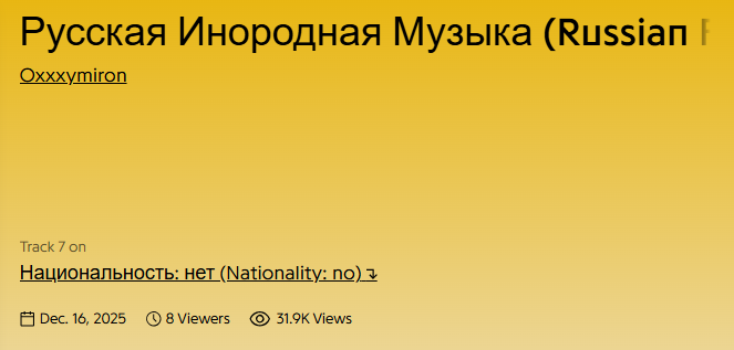 >>3238196 Насколько русские? Я тут увидел с утреца что русский еврей с лондона с гарвардской или какой там степенью новый альбом начитал. И последние пару дней слушаю шугезы+мидвест эмо образное на гугломузыке из автомикса, атмосферно. Кстати пятница почти 5 уже, харош работать.