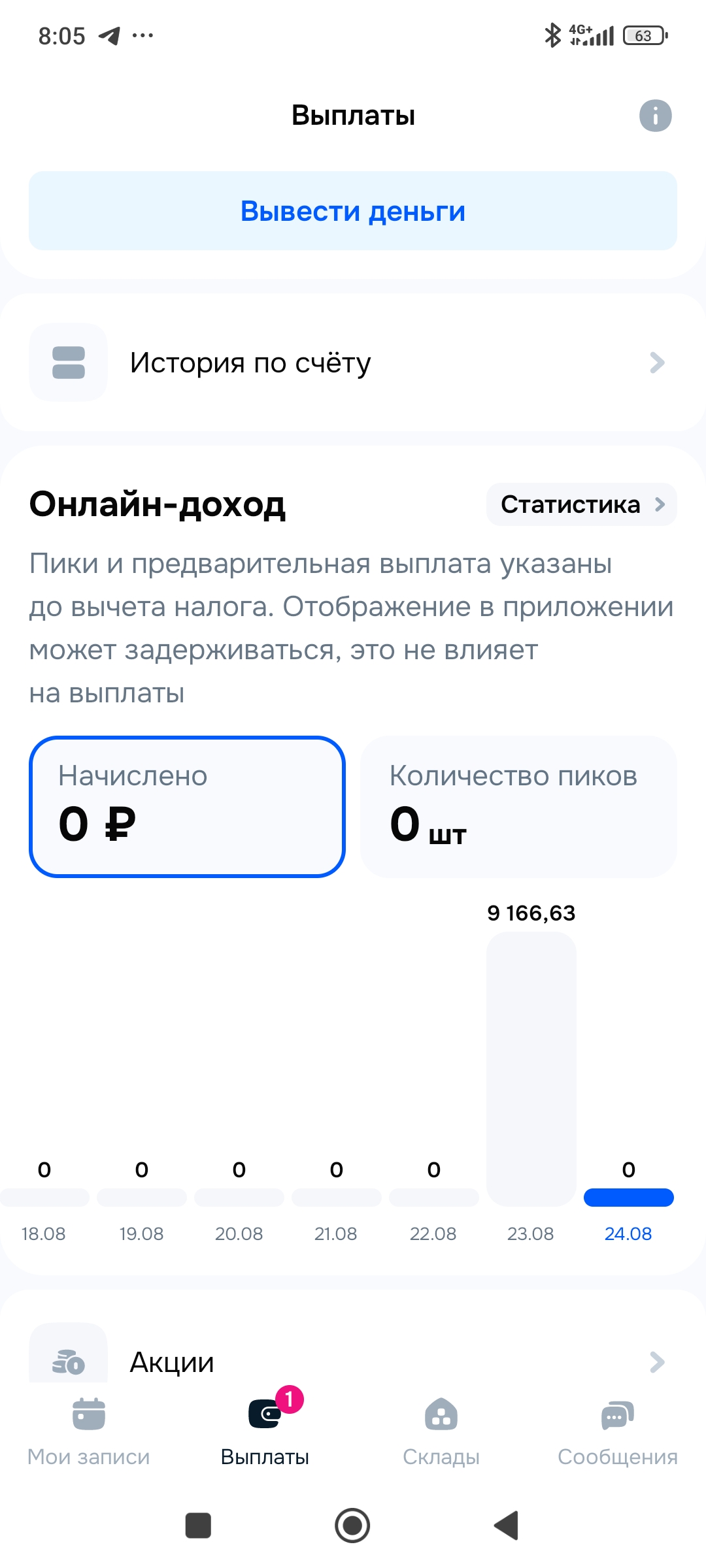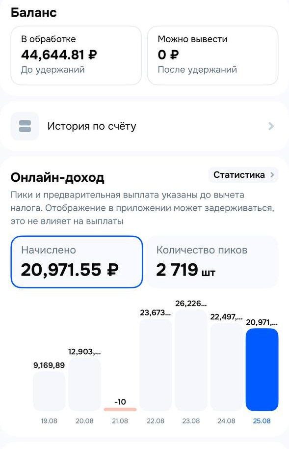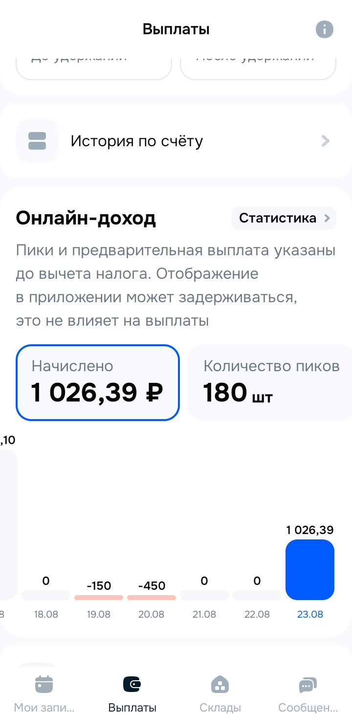 Q)А по выплатам что? А)В отличии от Озона, заработанная сумма в приложении показывается уже за вычетом налога. Но есть нюанс: в приложении есть две плашки Тарификатор и Баланс. После смены деньги идут в Тарификатор и лежат там 2 дня. В течении этих 2 дней с Тарификатора могут вычитать штрафы. На 3 день все что осталось от ваших денег за вычетом штрафов переходит в плашку Баланс. Баланс уже является неприкосновенным и из него ничего не вычитают. Дальше можете либо копить деньги на Балансе, либо вывести их на карту почти любого банка там большой список банков. Можно выводить деньги по сбп.