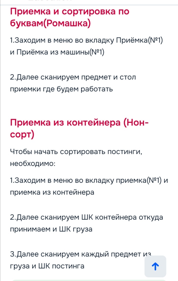 >>3171609 У меня есть человек с вб. Ну он меня учил немного после основного обучения, да. Но честно, даже не знаю, чему такому особому научил. Что можно не искать свой шк, если это не переупаковки и пикать любой. Внимателен но смотреть номер коробки, потому что часто Раскладка пикает верхнюю полку, но пикает нижнюю коробку от другой полки. Потом что если это верхние полки, то смотреть её всю+соседние стеллажи, потому что обувь мигрирует в этих пределах. Что в целом не смотреть особо цифры шк, просто пикать все подряд, по звуку определять, что пикнулось. Ну так сходу больше ничего особо не вспомню.