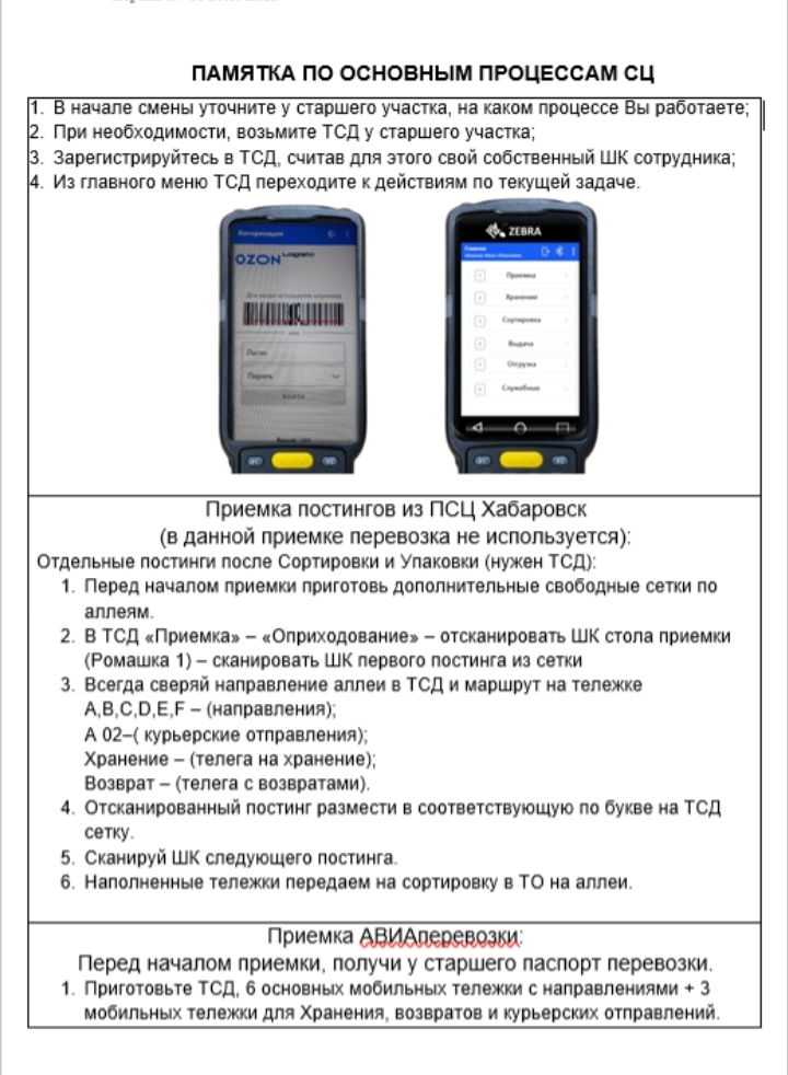 Ozon FAQ: Q) Как пойти к вам работать? A) Качаешь приложение Ozon Job на мобилку, регистрируешься и записываешься на первую обучающую смену. Для более лайтового вката лучше обучающую смену брать в будний день, потому что на месте будет специальный смешарик для обучения, который всё расскажет и покажет подробно. Возьмешь на ночь или выходные - просто приставят к кому-нибудь опытному. В первый день у вас будет смешарик, в следующие дни если какие-то операции не ясны тебе придется спрашивать у коллег, здесь это не баг, а фича так что не стесняйся спрашивать.