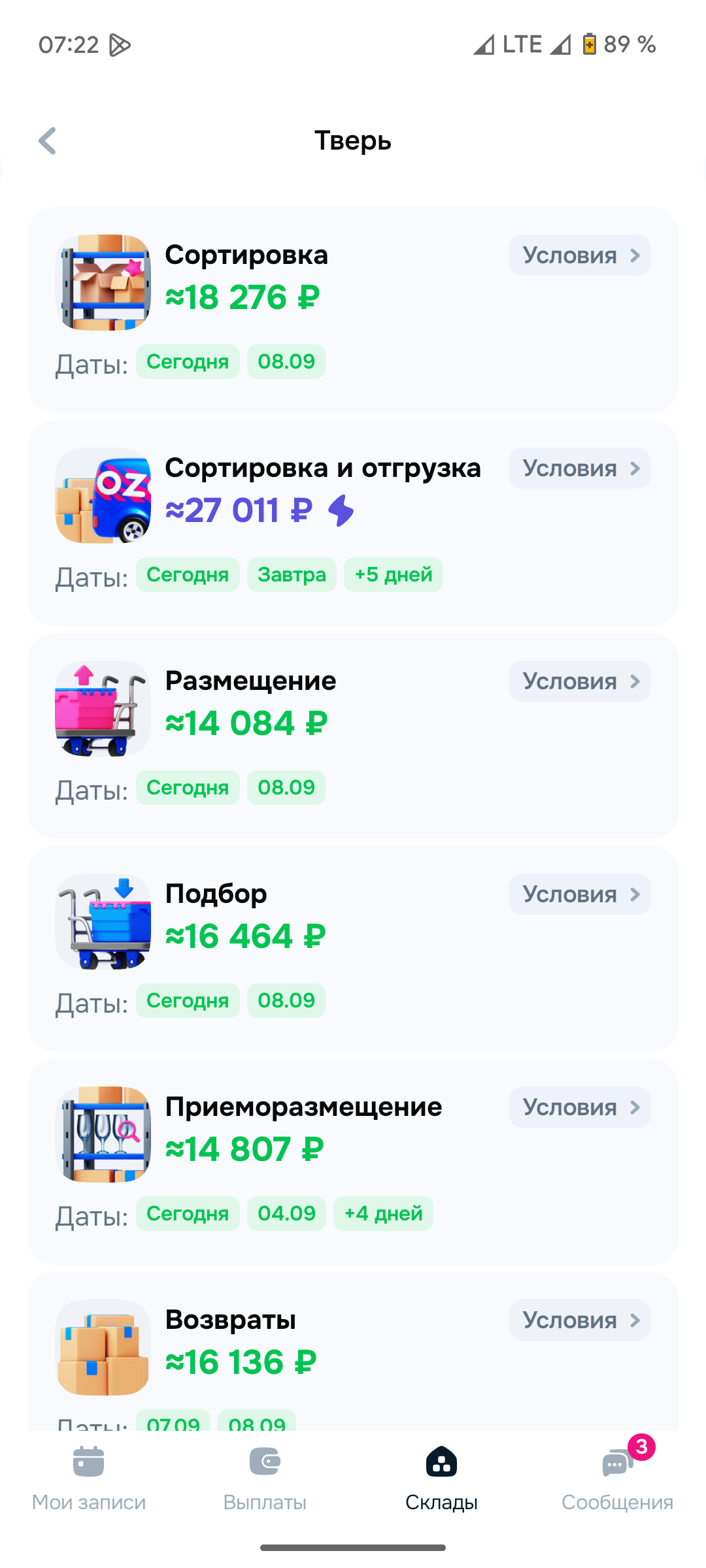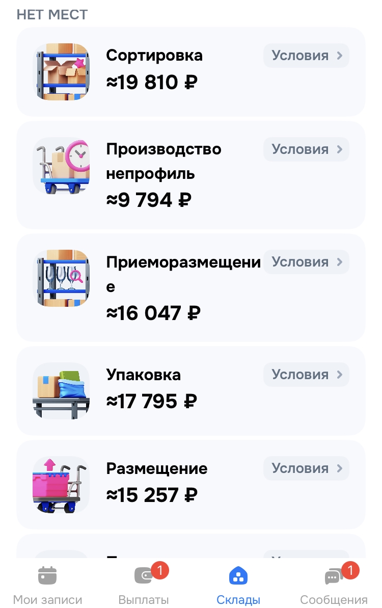 Q) Я зарегистрировался, а смен на складе нет, причем везде! A) Это норма, проверяй приложуху по несколько раз в день. Это потому что другие могут занимать смены сильно заранее, а новички нет.
