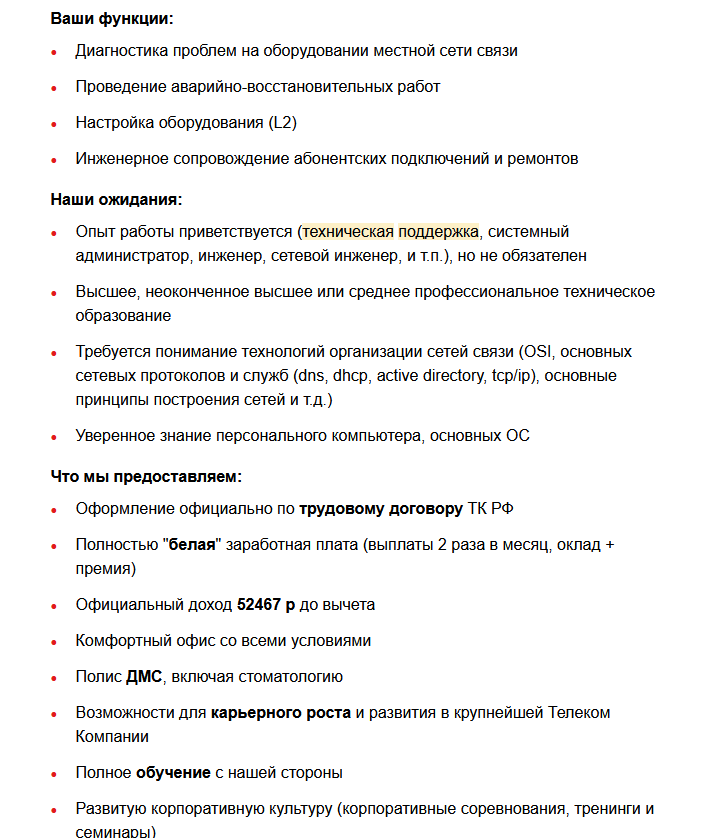 Иногда вакухи бывают в теневом бане, такое например было с вакухой от Ozon Банка, где зп была 70к на руки, полная удалёнка 2/2 в ночь. Никаких навыков не требовали вообще, только год опыта в голосовой поддержке и всё. За неделю 20 откликов набралось.