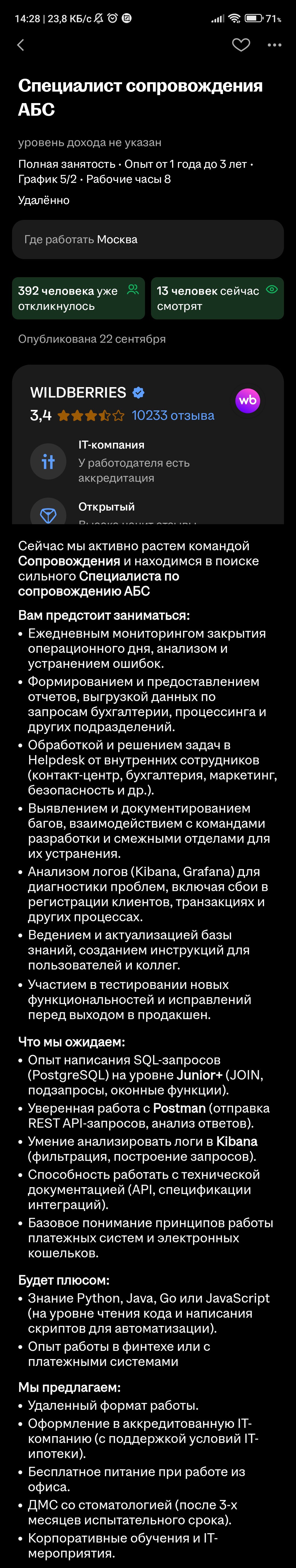 Все равно не понимаю, как им это поможет. Ну типа ок, в этих вакухах нужны скиллы в sql. Но В обычное тп можно по сути с улицы попасть, и на них тоже всегда дохуя было людей