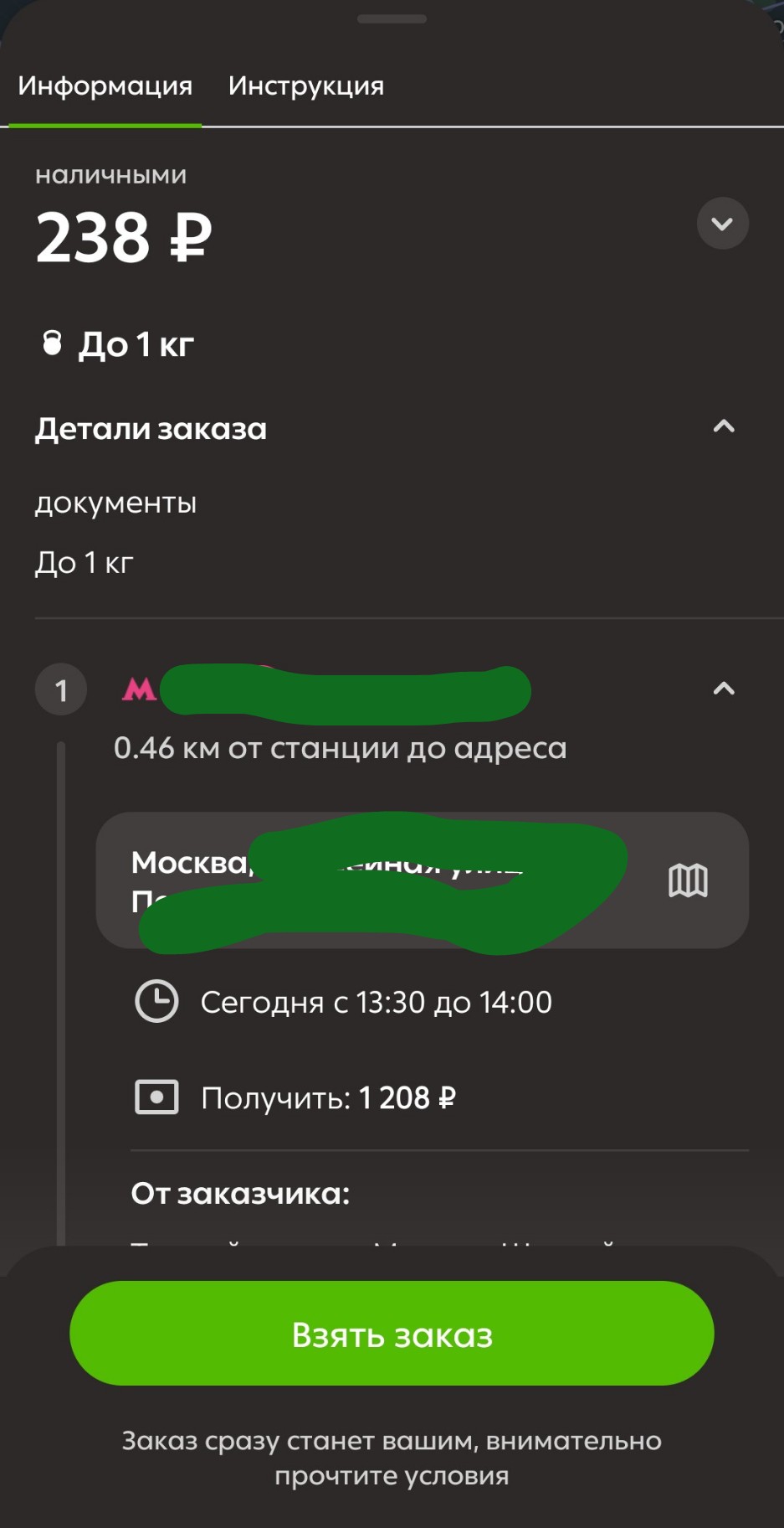 работаю курьером, но один из заказов был у подъезда, я пришёл , там ждал чел, сказал имя и откуда заказ, всё совпало с приложением, ну я его и отдал, по итогу он нажал что заказ не получил, а на след день у меня корректировка полтора косаря, сейчас вопрос решается, но чёт мне подсказывает что нихуя мне мои 1200 руб не вернут.