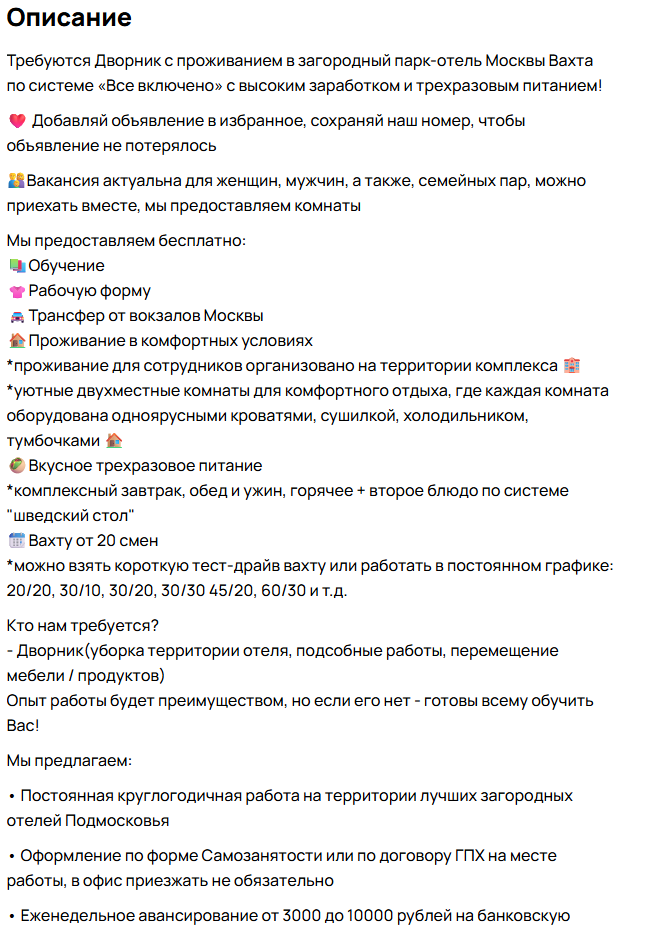 >>3204409 Хз, не совсем понял о чем ты. Ну там часто рекламы закладки работать или на хохлов. Короче ну вот к примеру группа в ТГ htt ps://t.m e/ TitStroi11 Много разных есть, многие закрытые. Там есть заявки, что за налик после смены. Смотри что бы человек часто выкладывал со своего аккаунта объявления и все.