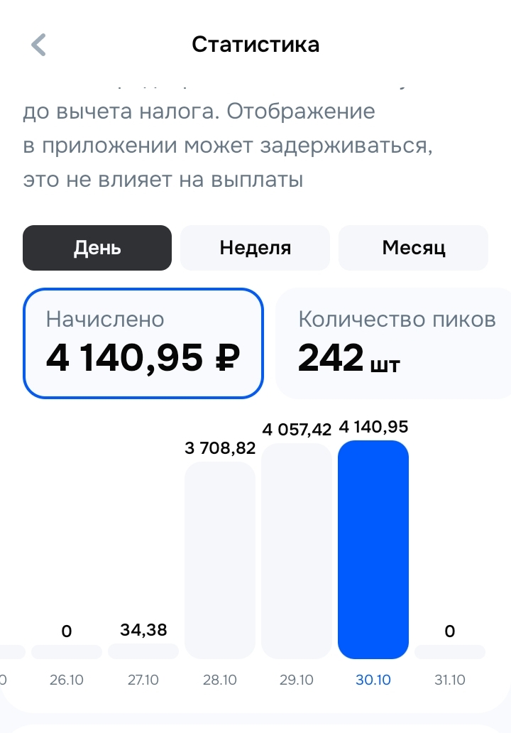 >>3208224 >Боюсь представить сколько тебе разделений прилетает... Не сказал бы что много. За последних 7 дней самый маленький на 53р, потом несколько дней в диапазоне 65-224р и один самый большой на 546р какое-то грязное пальто. Посчитал среднее арифмитическое за последних 7 дней, вышло 195р в день. Нормально, как по мне. Предыдущая неделя похуже вышла, там среднее за 7 дней 256р/день. Там мне два раза по 500р пришло за куртки. В целом, все ещё приемлемо. Не сказал бы, что когда пикал меньше, то мне меньшие суммы шли. Как будто та же петрушка и тоже порой прилетало за куртки. Тех же 500р спишут только с 5к, а не с 7.5к