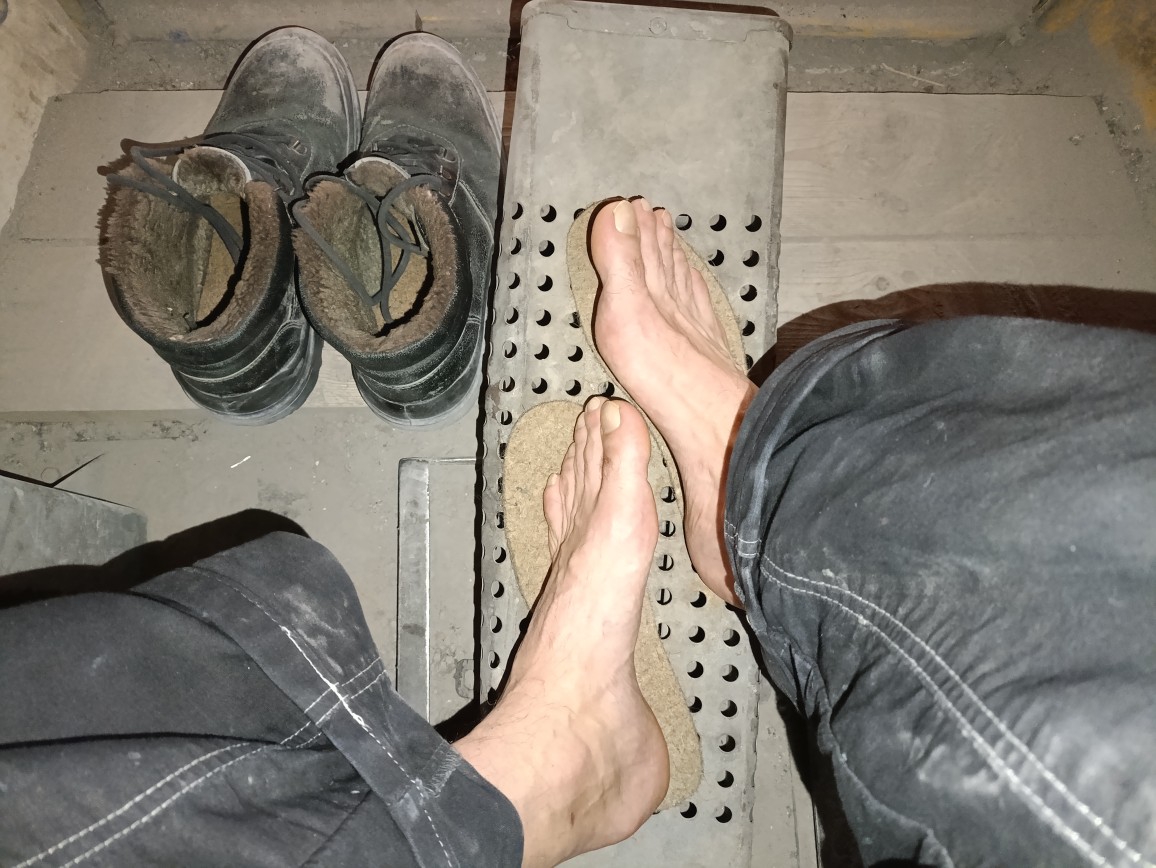 Выживаем в ледяном аду с помощью электрической печки - данная печка весьма длинная и нагревательный элемент там тоже длинный, он внутри этого корпуса с дырочками, греет хорошо, я готов слагать поэмы и петь хвалебные песни этому прибору, он гениален в своей простоте, это самая нужная вещь в зимний сезон. На ней можно так же погреть воду до состояния кипятка в пластиковой полторашке и пить горячий чай, это очень помогает не впадать в отчаяние от холода. Так же можете видеть мои боты с меховой подкладкой - хоть и выглядят мощно но промерзают насквозь если долго быть на улице, думаю купить пакетики грелки на будущее.