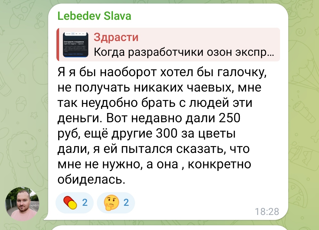 А мне сегодня какая-то баба смс написала - где мая вторая половина заказа!!!!!! вб. Не стал ей отвечать и вздохнул когда "выплата отправлена в банк", теперь могут че хотят вешать я не буду тогда ходить, у меня на примете другая интересная курьерка