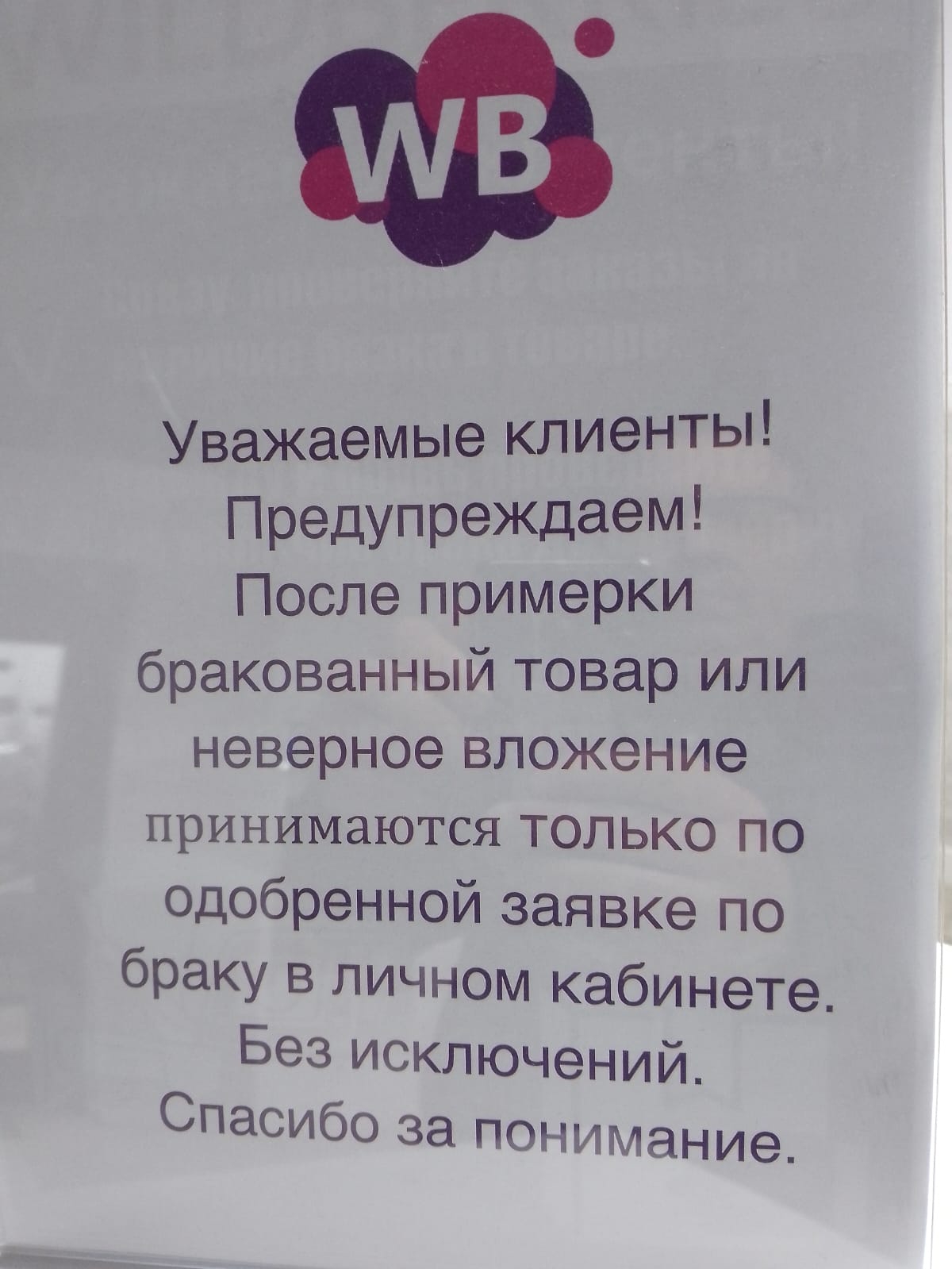 >>3218558 >Надо было звонить клиенту и просить код для возврата, Так я позвонил, объяснил что брак, попросил код, но код был только для получения, для возрата тупо не было кнопки/окна, при нажитии на возврат выдавал только код для пвз.