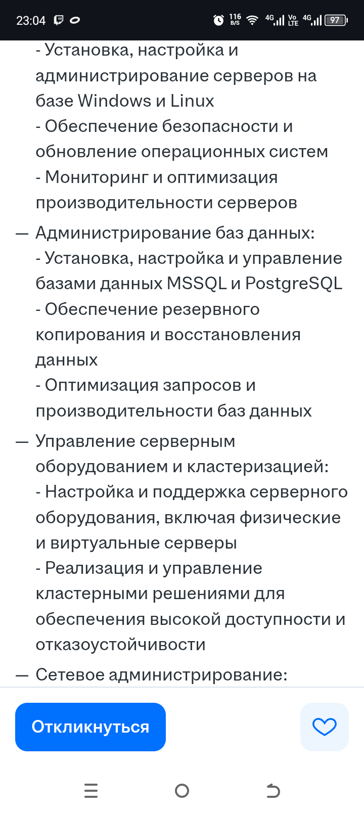 >>3224429 За 100К это дохуя работы. Виртуалки и кластеры на проксмокс, какая нибудь почта которую надо связать с АД, межсетевой экран на винбоксе, бридж возможно + VPN, заббикс это вообще не для рядового админа тема, на какой то хуй вписали базовый опыт администрирования линукс хотя по списку там уже минимум на среднем+ знать, еще postgre с mssql запихали, значит надо будет еще работать в mariadb, ldap, на php писать и прочая веб дрочь. Еще хотят битрикс с 1С втюхать, шок просто. Но тащемта похуй, осилить можно, но блять за такую зп это просто пиздец.