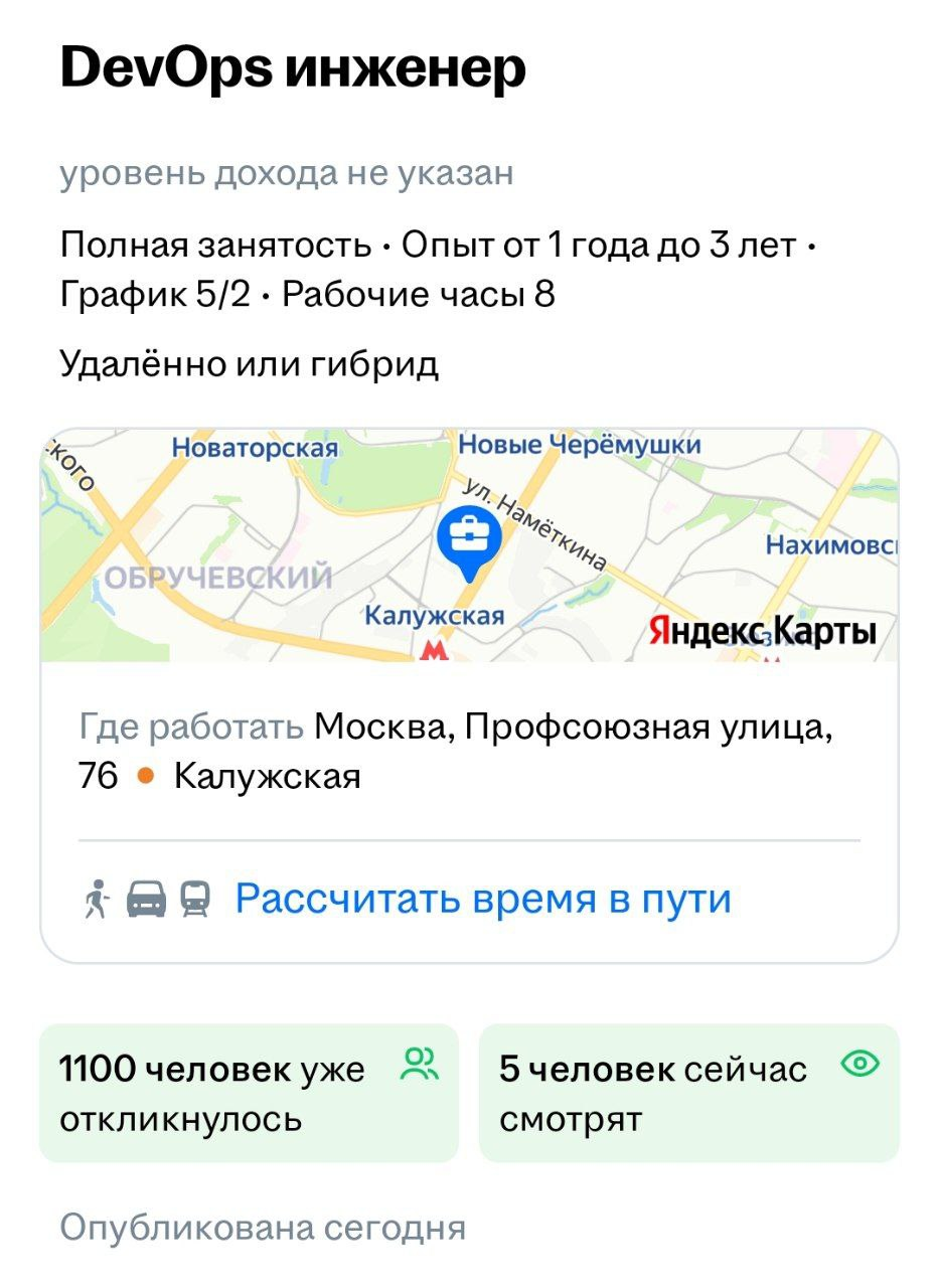 >>3234340 Как же не много? Почти на всех L2 вакансиях по 200-400 откликов за неделю. На L3 видел пару раз, что меньше 100, но там и требования уровня джуна девопса с кубером.