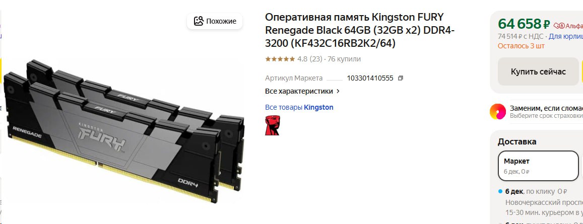 Предпоследний раз я горевал о просранных шансах, когда был резкий рост красных скинов в CS2, но там ладно - окно выгодной покупки там было буквально пара часов, причем ночью, с 4 утра. Но с памятью ничего мешало закупиться по 10к и сейчас перепродавать те же киты по 25к на авито, и иметь 2,5х Но как всегда я всрал.