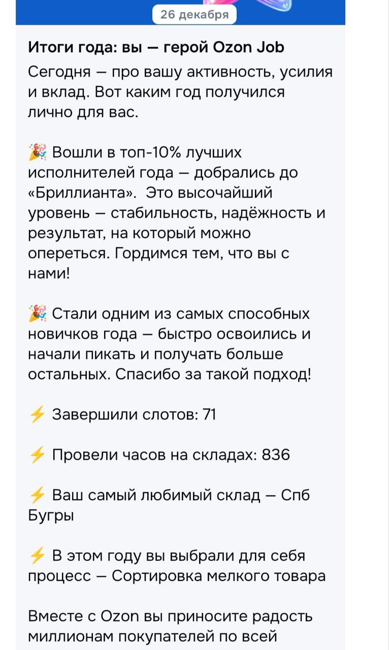 Q) Что по типу трудоустройства? А) Сейчас на ВБ остался только ГПХ. Те, кто давно работают, все ещё сохранили свои статусы самозанятых. Может ещё вернут возможность и новеньким идти по смз, но маловероятно. Вроде как власти собираются натягивать компании с смз и вб этого боится. На складах Алексин, Невинномысск, Казань и может где-то еще есть трудоустройство по ТК РФ. Общие условия в плане работы у них такие же как у ГПХ имею ввиду, что у них нет привилегий, как это происходит на озоне. Для начальства склада они такая же вошь, как все остальные. А так же у них все ещё полностью свободный график работы, но стоимость пиков может быть на 10% выше и само собой есть отпускные.