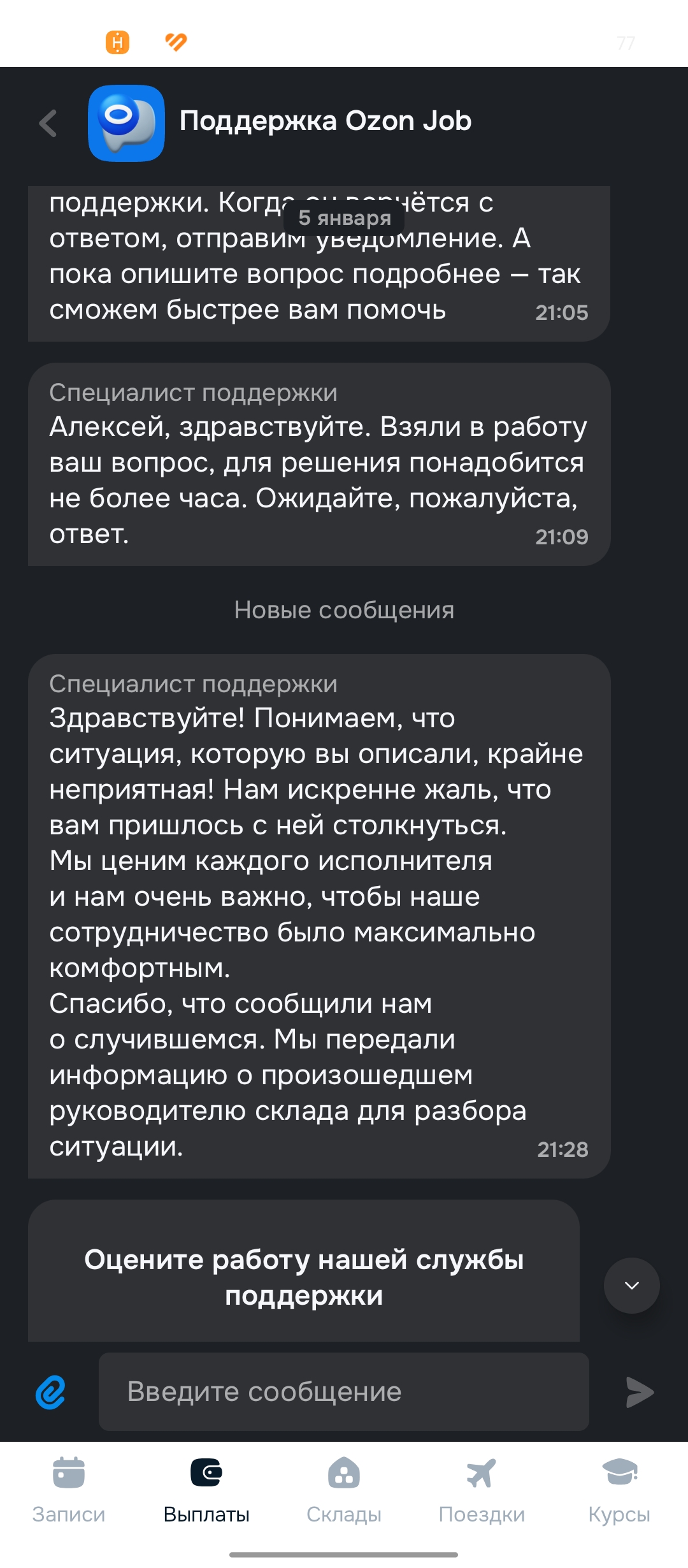 Здарова, работяги. Работаю в Озоне, мини склад..Пятый день уже. Вообще насколько реально там 5к заработать. У меня больше 1500 рубасов не получается. Хотя ебашу дохуя, переров кроме 30ти минутного обеда не делал. Нужно ли потерпеть ещё недельку или сьебаться на ВБ?