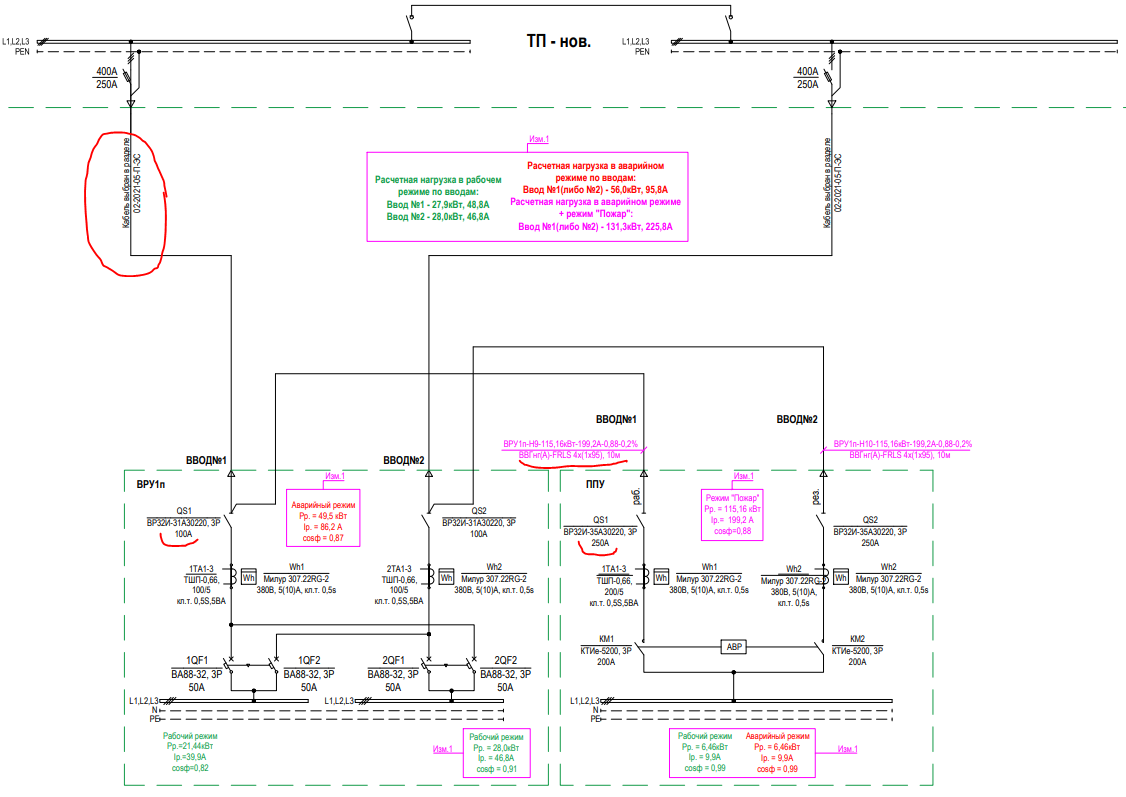 >>3255055 Учитывали, но кабель вводной мы не думали, что 185. Из-за этого не хватает места. Причем в ППУ рубильник на 250А, я говорю перенесите 185 туда наоборот, там то побольше габарит. Либо предложил засунуть в ВРУ вводные клеммы ДКС FER-185. На него посадить вводной кабель снизу, сверху 16 провод до рубильника ВРУ и 95 до ППУ, под один болт. Вообще по хорошему, можно было ППУ разделить на два шкафа поменьше и сделать их оба навесными и меньшего габарита, чтобы не пришлось 95 кабель тянуть. Странное решение, что ППУ больше нагрузка и рубильники чем в основном ВРУ. А по поводу схемы: она очень распространенная в жилых домах.