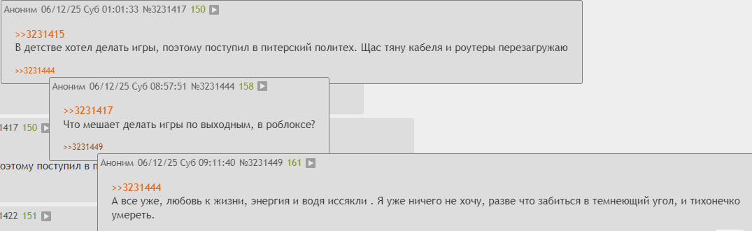 Вопрос имеется к местным днарям. Я эникею за полтора МРОТа в родном городе с вышкой кодераста, живу с родителями. Перекатиться по специальности НИКУДА не могу, даже в ИТ-отделы локальных заводиков, поскольку сейчас ВЕЗДЕ, включая техпод 2 линии, нужен подтверждённый опыт пердолинга с вещами, которые адекватно не запустишь у себя локально (у меня бомжекомп из 2016-го) и на древнючих занюханных рабочих станциях с госконторы. Как и дельфист, срал откликами до посинения - нигде не нужен.