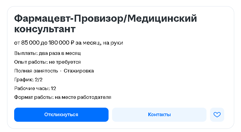 кто-нибудь пробывал в аптеке работать? вроде как есть плюсы что в белую и поближе к дому. Раньше вроде как надо было образование, но сейчас смотрю берут либо без/либо обучают, хотя конечно немного странненько это все, какие подводные, что думаете?