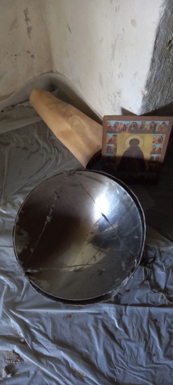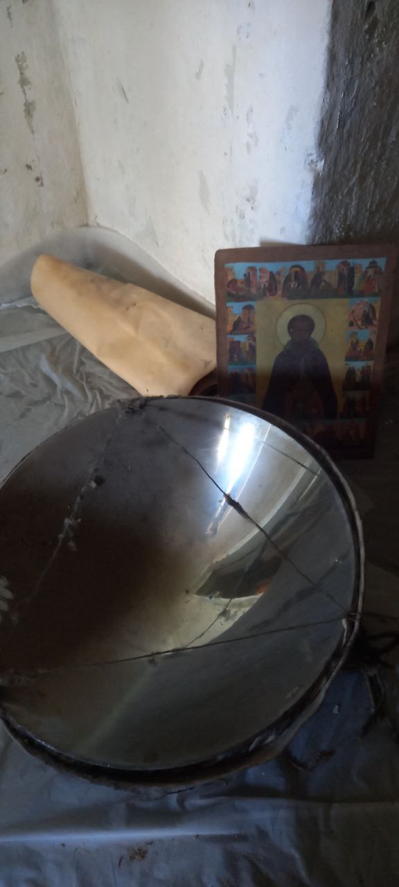 Привет. Ищу экспертов в данной символике. Просто интересно знать, что это и для чего. Дежало в потолке над ванной. Таз-купол зеркальный с треугольником. Икона. Было обнаружено при ремонте дома. Дом старый.