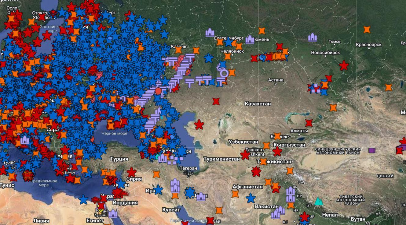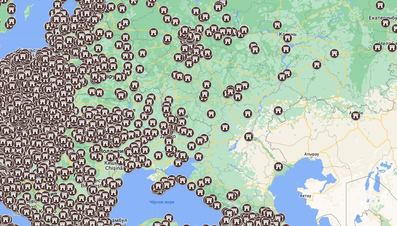 2. Карта "Звездных" крепостей. Города звёзды / Крепости звёзды / Звёздные города КРАСНЫМ ЦВЕТОМ - обозначены города звёзды, которые видны на карте целиком или только их фрагменты. СИНИМ ЦВЕТОМ - города звёзды стёртые с лица Земли, но упоминания о которых есть на старых картах и гравюрах. ОРАНЖЕВЫМ ЦВЕТОМ - выделены крепости, города и другие места, где возможно были города звезды, но свидетельств нет. Другими цветами обозначены интересные объекты, такие как Змиевы Валы, воронки от взрывов и др. https://goo.gl/maps/NepxnongEbEZNaeWA