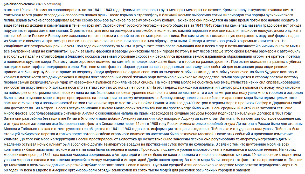 а вот временная шкала более точная: 1. звуковой? скальный век - когда вырубались тупо в скалах строения. все горы на самом деле являются рудниками, а вулканы - терриконами и отвалами. энергия основана на звуке? 2. звуковой? каменный век - когда по всей ((планете))) была единая каменная цивилизация, которая строила всё из камня (не сразу в скале делала, а делала из скалы некие большие кирпичи) - от (((храмов))), до зданий, цивилизация была гигантов т.к. высокие дверные проёмы и прочие ступени - научпокеры называют это "римской" империей. энергия основана на звуке? 3. эфирный железный век - с XXXX по 1800 (возможно 1812) , когда все поделки делались из металла, из всяких шестерёнок, но люди уже не гиганты, а обычные по полтора-два метра, пишущий мальчик робот 1770, металлическая птица - эрмитаж золотой павлин 1770 - года магическим образом сходятся как раз перед сменой цивилизации в 1812. всякие балы с люстрами под 10 метровым потолком, которые сами горели и никакой додик там свечи не лазил менять. энергия основана на эфире? 4. паровой железный век с 1800 по 1950 - много инфы, что с 1800 по 1900 года были огромные металлические царь пушки, водные атомоходы и вообще вооружение в 1 мировую войну было более крупное чем во 2ю мировую войну, т.е. более массивное, более железное. также в это время в 1854 завезли детей через поезда - гуглить "сиротские поезда америка" (т.е. тупо в пробирках нахуярили детей и привезли на поезде в города их), а также находили детей в капусте (гуглите открытки дети в капусте), это не рофл. сюда же (((пожар сан франциско))) и прогуливающиеся как на курорте челики в классических костюмах. т.е. в 1800 году произошёл мини-потоп, прошлую цивилизацию смыли и начали завозить новую цивилизацию уже наших людей. энергия основана на пару? 5. электрический компьютерный век - с 1950 по сей день - тут уже упор идёт на развитие ai компьютеров из песка (да да, люди сами додумались ага, и сами ведут всё человечество в цифровое рабство, конечно. и никто не планирует на столетия вперёд, ага и все страны не идут по чьему-то единому плану развития в сторону скайнета и сити 17 ага) - ну тут итак всё ясно. энергия основана на электричестве