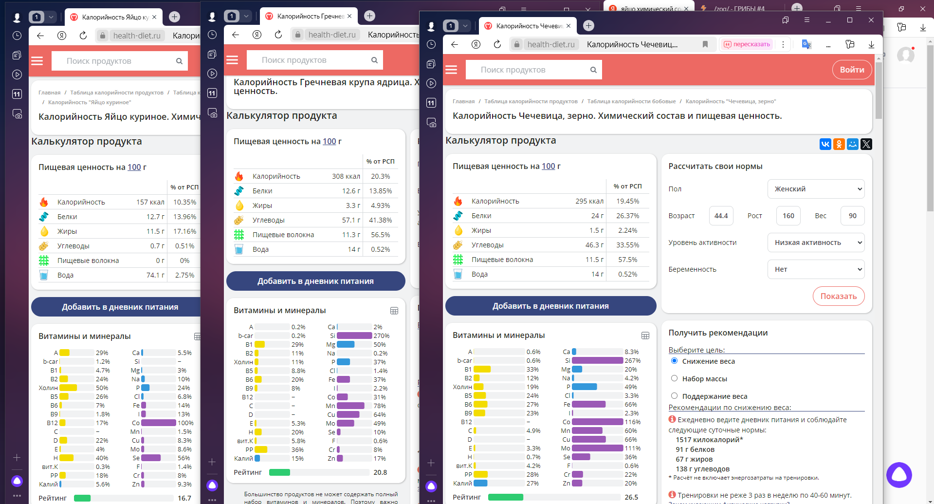 >>791638 >Яйца это лучший источник белка С тем что яйца это лучший источник белка, из животных продуктов, я согласен >из растительной пищи, чтобы получить достаточно белка, ты будешь есть очень много Это не так ( пикрил ). яиц нужно съесть больше чем гречки >желудку будет тяжело все это переварить Растительная пища легче усваивается организмом, можешь хоть ведрами есть гречку, будешь чувствовать себя прекрасно. А попробуй за раз съесть 5-10 яичного белка, и посмотри на свое самочувствие. Если яичный белок такой хороший, то почему я чувствую себя хуже после того как его поел? С растительной пищей такого нет. >Напиши, чем ты питаешь. Я не могу сказать, что мой рацион идеален, я стараюсь питаться разнообразно. рацион примерно 30% крупы, 30% овощи, 20% орехи, и остальные 20% зелень, семена, ягоды, фрукты и тд. Избегаю соли, сахар не ем.