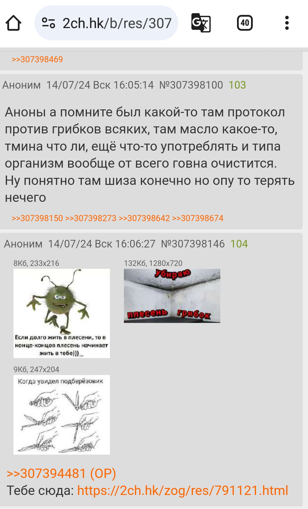 Координируемся в этом итт треде, делимся опытом, рассказываем свои стори о заражении грибом и о лечении от него, готовимся к перекоту в тг. В треде орудует грибная лахта - зомби с пораженными грибами мозгами, будьте бдительны Всем здравия! Победа над грибами будет за нами!