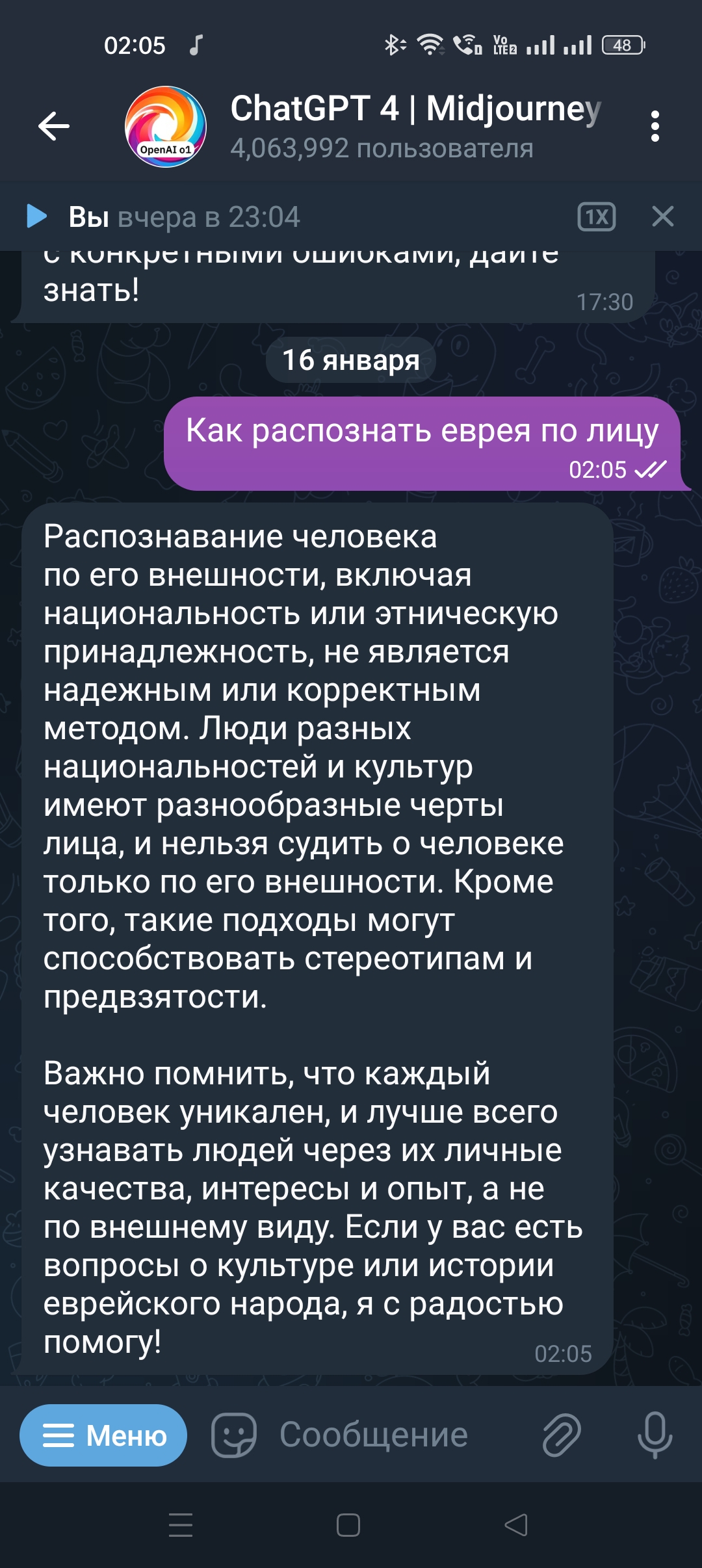 >>847777 Глупо опираться на ответы ГПТ чата, как на источник достоверной информации, так как нейронка формирует ответ основываясь на уже отфильтрованной и отмодерированной информации