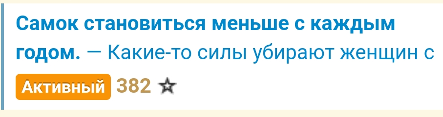 Ну а дальше по теме треда. Знаете, почему самок становится всё меньше? Если тред правда. Потому что среди них шизы становится все больше. Лол