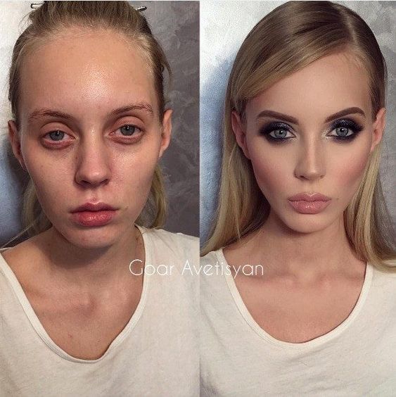 посмотреть на эти фотки, без мейка, и их воспринимаешь вообще иначе. Типа 500 раз подумаешь, а нужна ли вообще она мне? Что она мне даст? И относится будешь именно так, как она/они выглядят.