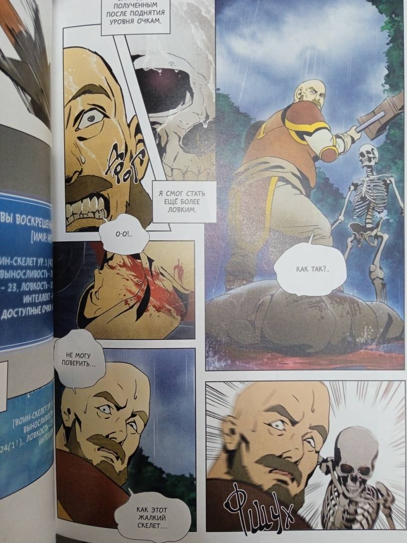 Есть хорошая манга Воин скелет не смог защитить подземелье.