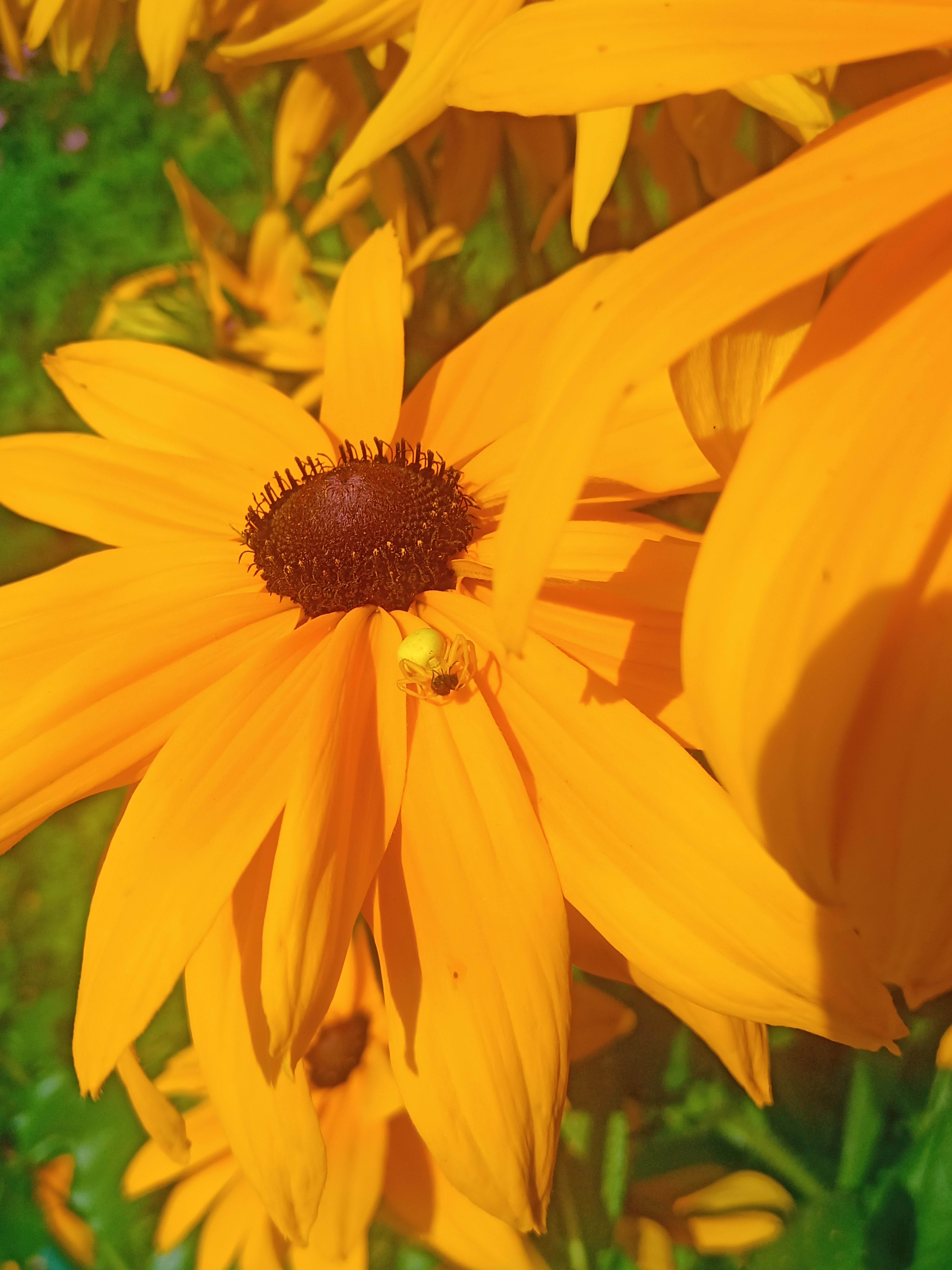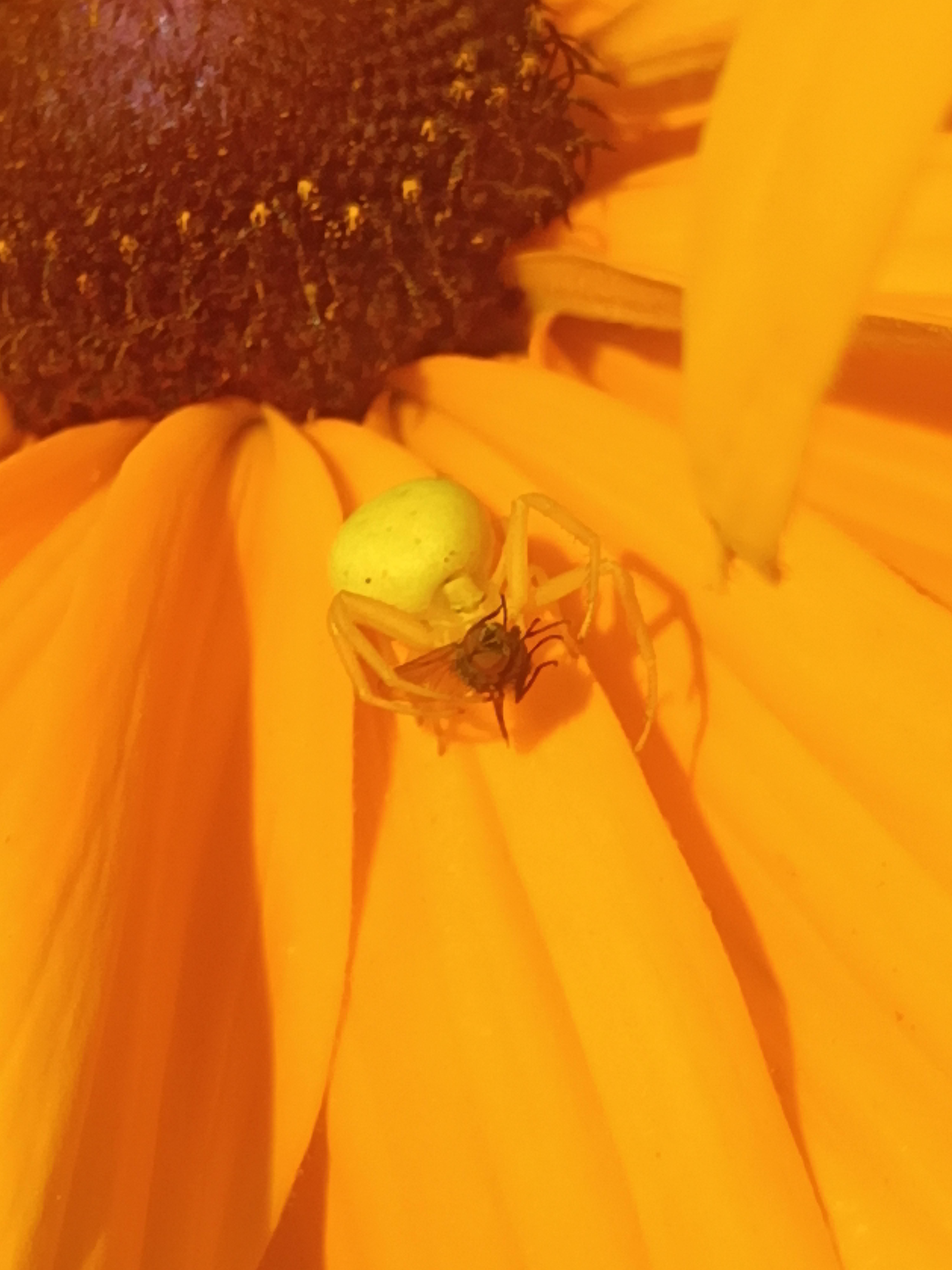 Пока живу на частном участке в МО. Тут много насекомых, муравьи, жучки разные, шмели, пчёлки летают, даже паука охотника заснял с зеленым брюшком и маленькой мушкой которую он поймал. Он не плетет паутины, а просто ждет свою добычу и бросается на нее. А вот кого я не вижу это стрекоз. Может они ближе к водоемам живут, не знаю, но я за лето ни одной не увидел ещё.