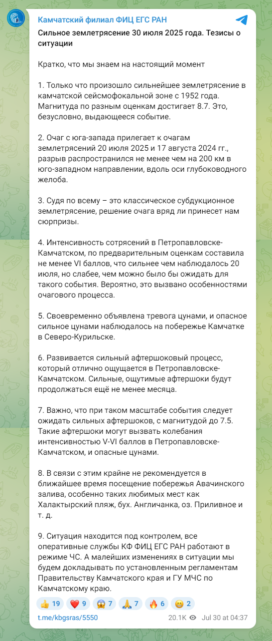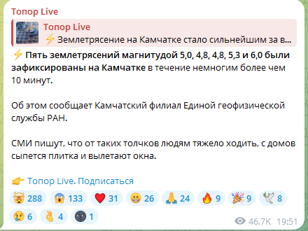 ❗Сегодня произошло сильнейшее землетрясение на Камчатке с ноября 1952 года (магнитуда - 8.7; угроза цунами объявлена на всём Тихоокеанском побережье: в России, в Японии, в Китае, в США, в Канаде и Мексике). Тогда, 73 года назад, Северо-Курильское цунами высотой более 10 метров в три волны смыло с лица Земли целый город. Немного политической конспирологии: землетрясение произошло 05 ноября 1952 года, и ровно через 4 месяца в иудейский праздник Пурим был убит Иосиф Виссарионович Сталин, а в рамках руководства КПСС произошел по факту госпереворот, заинтересантами которого были элиты США. У сильных мира сего (любящих цифры, знаки, нумерологию и эзотерику) есть еще такое правило "36 лет" (в иудаизме число 36 имеет особое значение в части концепции ламедвовников, то есть тайных праведников).
