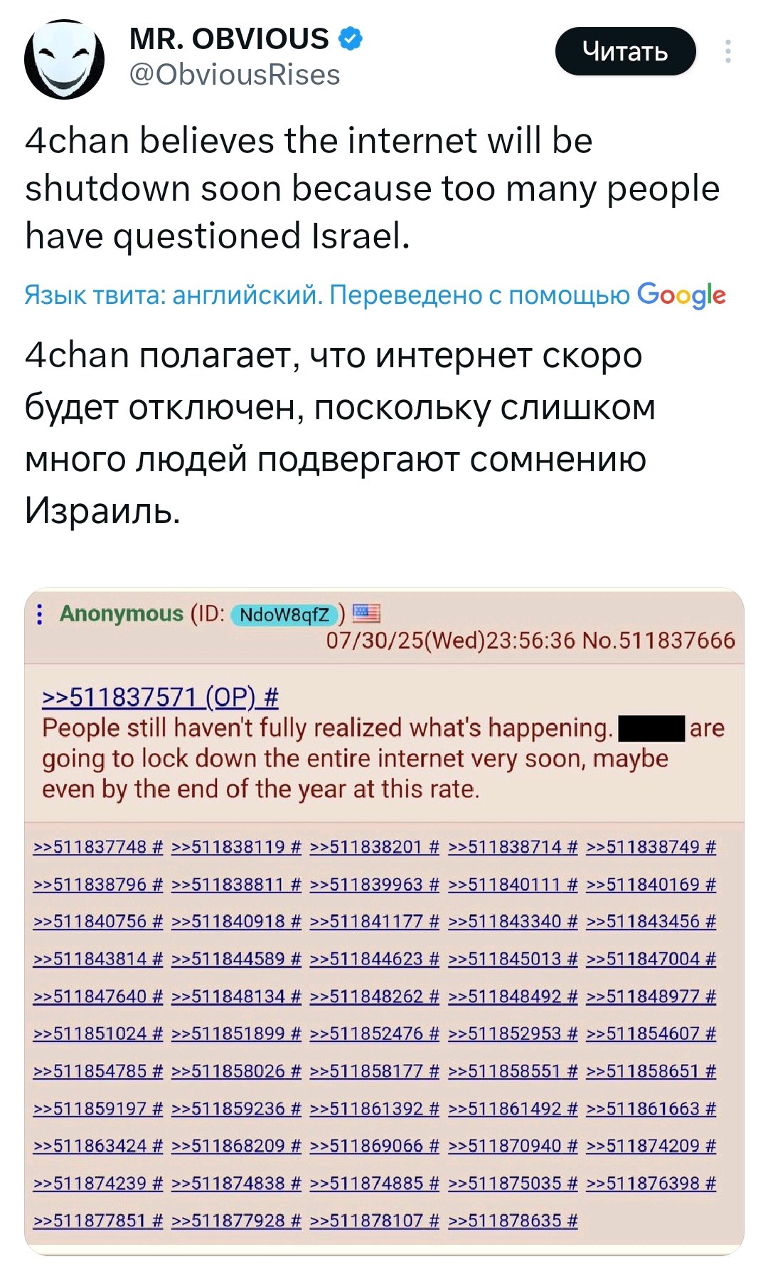 Вот сейчас в Сибири пошли рубить мобильный траффик по регионам, за сегодня только уже в трех объявили об ограничениях. Хоть один тут всрали, всратошиз, всратоши или всратосиопея об этом ванговал? О причинах этого? Или что трамп поставит новый дедлайн?