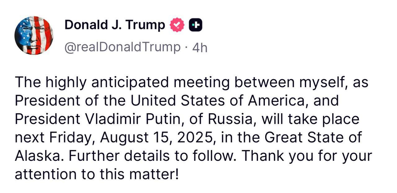 Встреча президентов России и США на Аляске- это поистине историческое событие, значение которого для всего мира будет открываться десятилетия спустя.