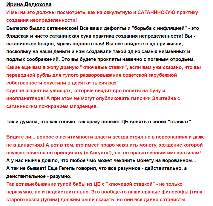 > Это же запрещённое влияние на власть пытаются сделать и в России. Но в России это сложнее. Почему? Потому что в России глубинное государство, как оказалось, не так сильно, а вот внутреннее МО сильно весьма. Это когда мы перемещаемся в альтернативную реальность? читал несколько раз, что из-за этого некоторые пророчества Али и Сатоши не сбывались. Это все объясняет.