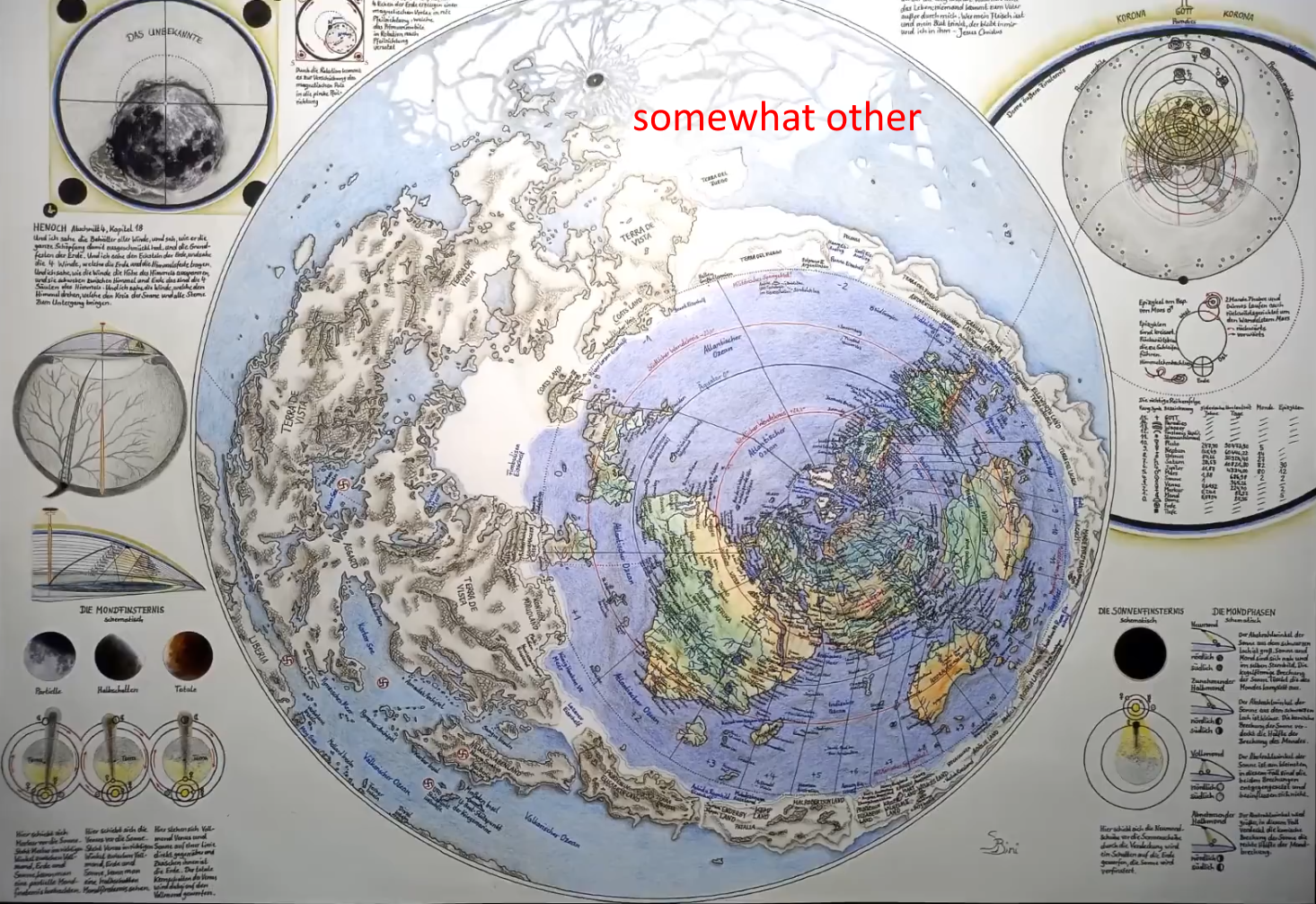 >>926798 Потому что нет никакого южного полушария, есть гора - Меру где живут Боги, на северном полюсе. Над ней Дхрува - Полярная звезда. Чем дальше от Меру в области гор Лока-Лока, которые опоясывают мир, тем дальше от полярной звезды, и там её не видно. Земля имеет форму Курма - черепахи, то есть слабо выдающейся полусферы, окруженной океаном. Съемка с большой высоты обыкновенный фишай.