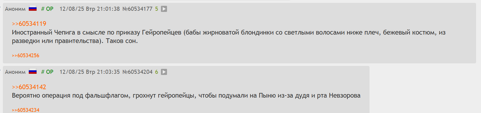 >>906116 Отключай комп и всё. >>906117 Не оскорблял тебя, ответил по факту. Ничего тебе не обязан. Если тебя что-то оскорбило то твои проблемы. >>906118 Потому что зашел в тред. Захотел. >>906140 Это твои проекции. Тебе никто ничего не должен. Я тебе уже сказал, на зоге есть пачка запретных тем, за них бан и сносится тред или комментарии. Каким нужно быть дебилом чтобы их поднимать, просто потому что какой-то рандом провокатор спросил? Получать бан на неделю, на ментовской борде, просто потому что рандому интересно. Охуенно, выгодный обмен. >>906159 Не факт что будет встреча. Есть слухи, мол на флайтрадаре анонсы видели пачку грузовых военных самолей с бритахи в пильшу. Это не проверенная, просто слух.