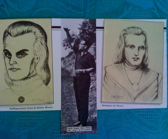 Через несколько месяцев Сирагуза имел тайную встречу в удаленном лесном массиве, с двумя гуманоидами в серебристых космических скафандрах, ростом более 1.85 м, атлетического телосложения, с длинными светлыми волосами, спадающими на плечи. Они представились как Астар /Аштар/ и Итакар. Астар назвал себя командующим космическим флотом, база которого расположена на Венере. Они отправились на космический корабль, расположенный над Этной, инопланетные личности просили Сирагузу передать послание правителям на Земле.