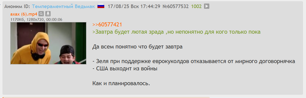 А почему Петушиный угол замолчал? Где Сасоши? С его Порыжем и войной, которая закончилась в 2024-м! Опять говном обмазался?! Или этот ебанта Али, с его вероятностями! У меня бабка точнее прогнозы делала! Может у кого еще есть тоные прогнозы?