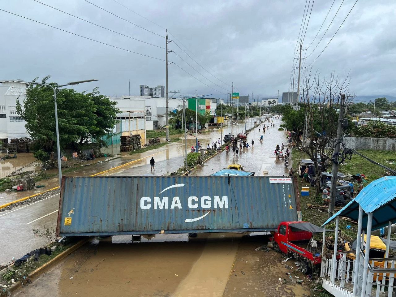 Из-за сильных дождей местная река затопила несколько улиц, на дорогу сошёл оползень. Вышедший на сушу, водяной смерч, опрокинул грузовой транспорт и повредил здание.