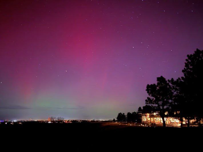 Следствие недавних магнитных бурь по Земле проходят многочисленные северные сияния, некоторые настолько яркие, что снег тоже буквально светится зеленым