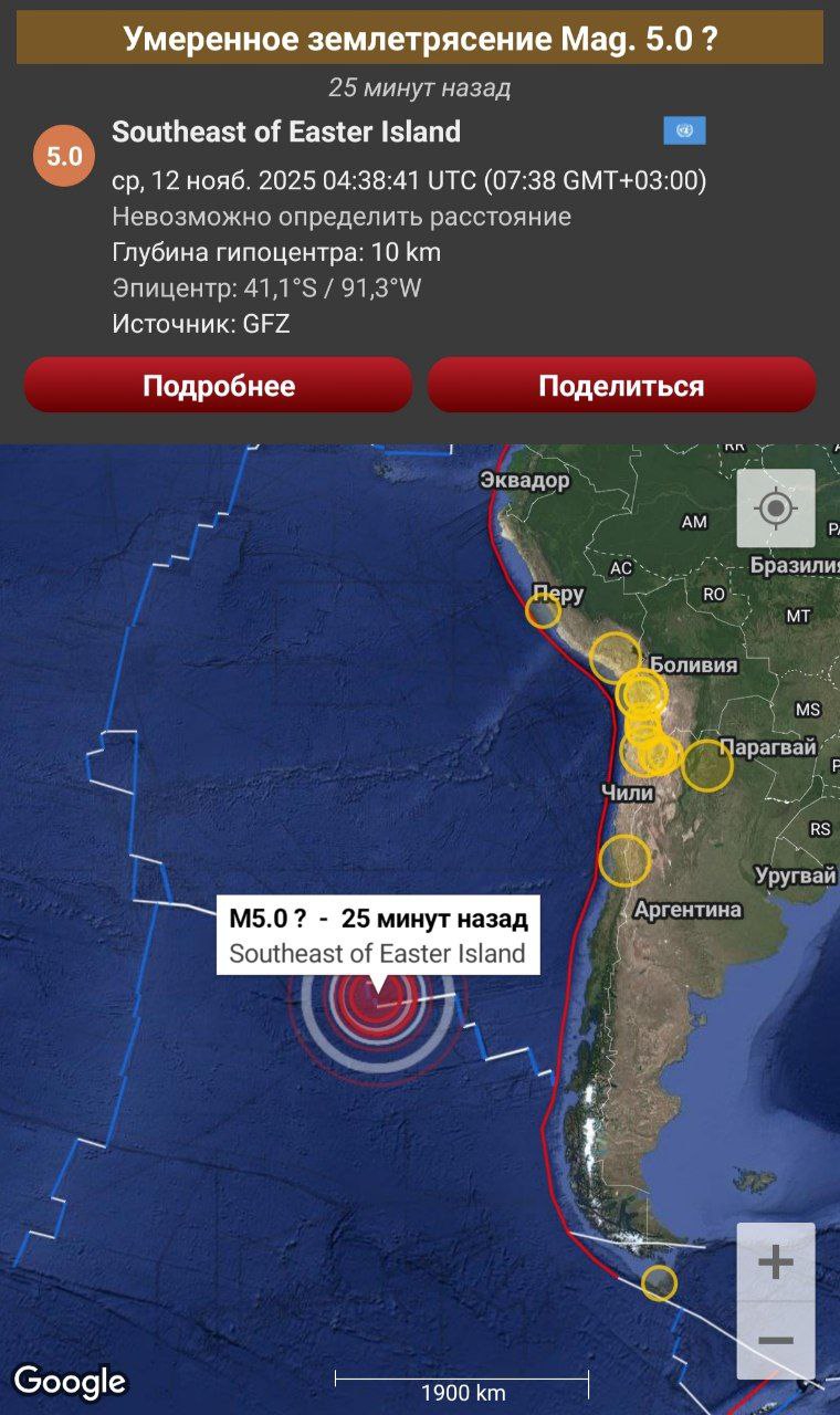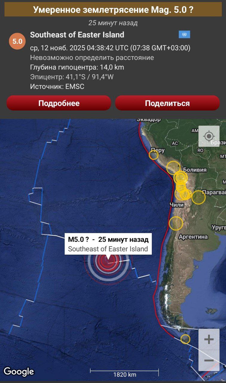 Землетрясение магнитудой 6.3 произошло в Венесуэле в 6:51 по московскому времени. Очаг залегал на глубине 14 км. Эпицентр располагался в 27 км от города Мене Гранде.