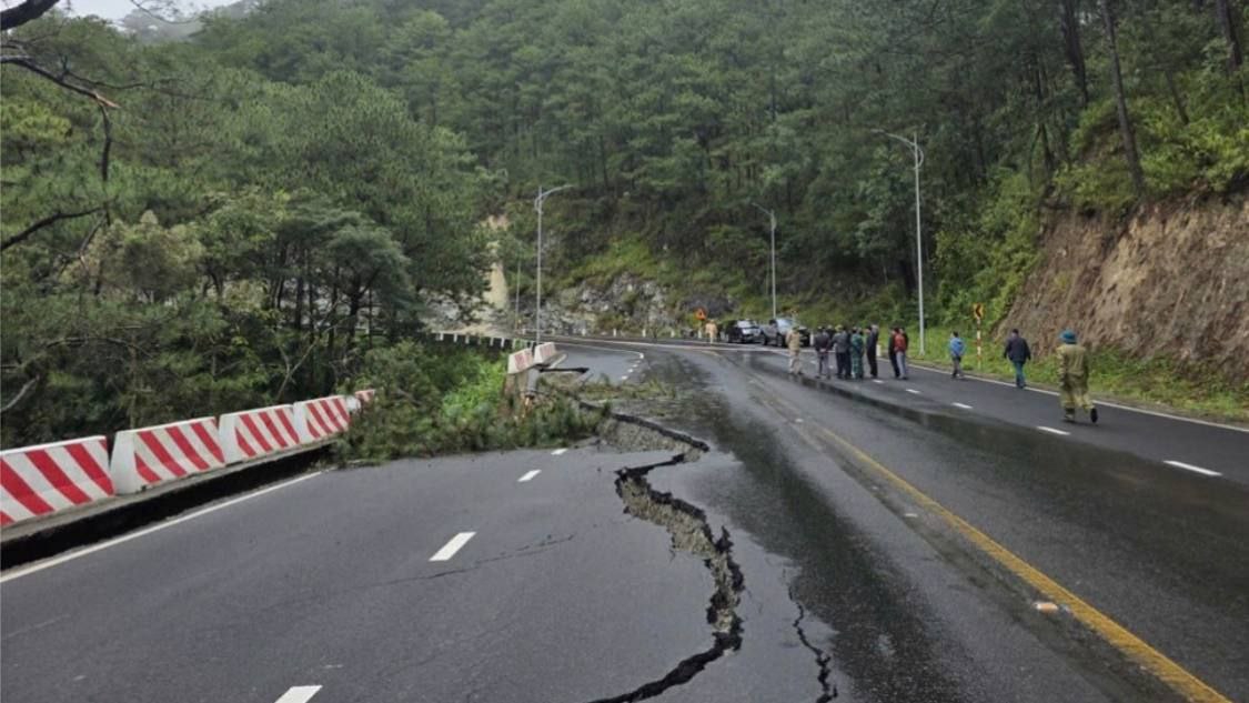 Трещины появились на дорогах возле Интегрированной школы Хагная в Сан-Ремиджио, Себу, после землетрясения магнитудой 6,0, которое произошло в провинции в 1:06 утра в понедельник, 13 октября.