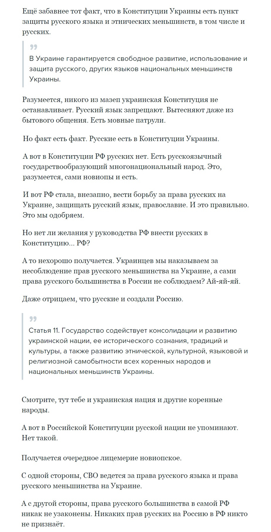 >>919806 >русской культуры Что такое русская культура? Возьмём, например, Достоевского. Нам его пиарят как главное лицо романовского православия. А мне как-то попалось исследование, где говорилось, что Достоевский отрицательно относился к официальной церкви и что его литературные герои это не представители офиц. церкви как нам пытаются преподнести. >>919808 >нацики православие никогда не уважалии и больше склонны к попсовому язычеству скандинавскому - с рунами, вигингами И при этом они со своими рунами ходили на всякие марши с флагами Ри. О том и речь, что нацики это пустые нпс. У них нет мировоззрения. В голове одни неонацистские слоганы и комплекс неполноценности перед немцескандинавами. Они не понимают, что такое язычество, что такое РИ, кто такие русские. И таких нпс выращивает романовская матрица. >>919826 Романовская матрица это болезненное образование. Оно не может породить вменяемости. Потому что: — его ядро это церковь на латино-польской основе, которую здесь не приняли. Поэтому их постоянно преследует желание взять реванш. — его едро это поклонение и подражание западу. Нам столетиями внушают, что запад это вершина человечества и что нам надо ему поклоняться, а иначе ты дикарь. И вот запад эволюционирует в какую-то непривычную сторону всяких лгбт и прочих небинарных родителей номер 1 и номер 2. Снова удар. Ведь романовская матрица вне поклонения и подражания западу жить не может. Теперь она рыскает по помойкам американско-немецко-скандинавских неонацистов, чтобы доесть за ними объедки.