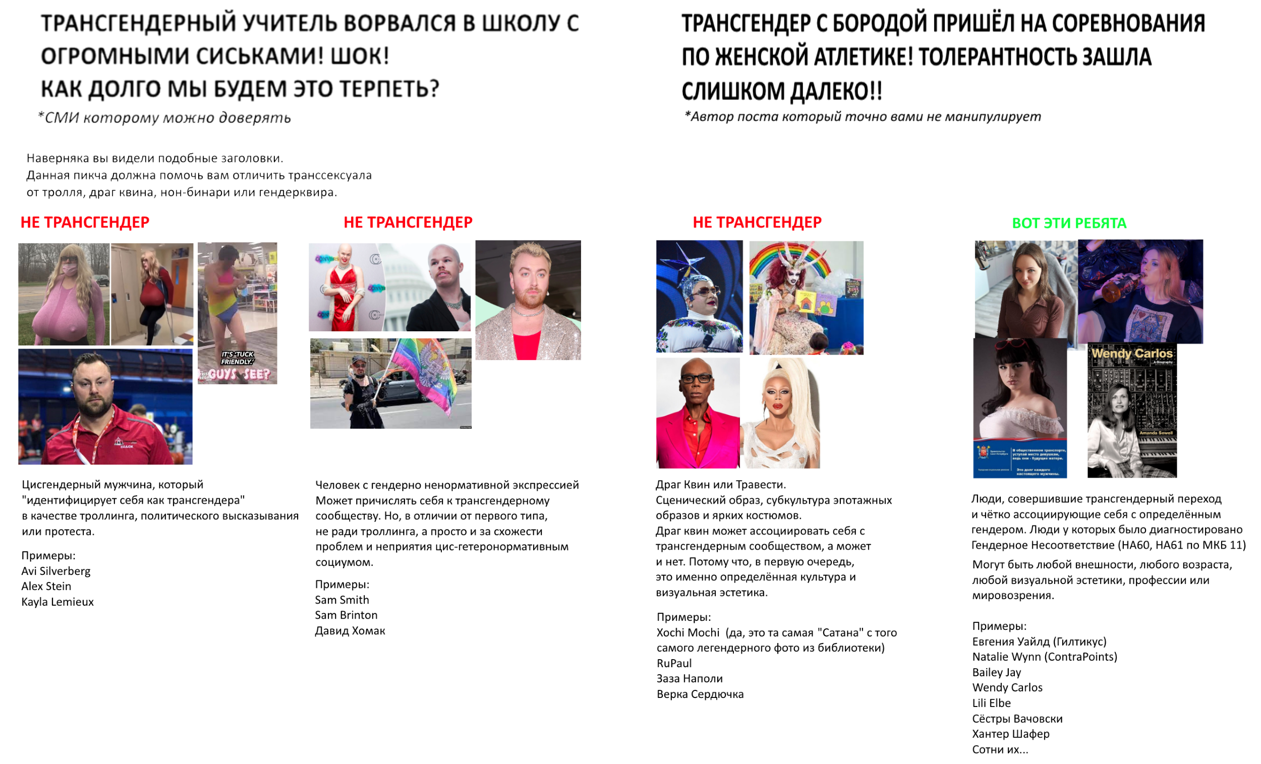 >>921711 повесточка это пугало для быдла. проблемы в геях и трансгендерах нет, парады лгбт и трансы учителя с огромными надувными сиськами это проекты спец служб, они специально шкварят "движения" (которые не нужны и созданы ими самими), людям всего то нужна была свобода быть кем хочется, но им сразу указали как им надо вести себя, в какой цвет красить волосы, какие проноунсы использовать и тд. все это делается что бы загнать людей обратно в стойло консервативных "ценностей" и стагнации, что бы знали свое место. запомни зогачер - традиция и консерватизм враг прогресса. культура меняется согласно потребностям человека, а не наоборот! когда наоборот мы получаем индию или иную другую страну с тысячелетиями традиций.
