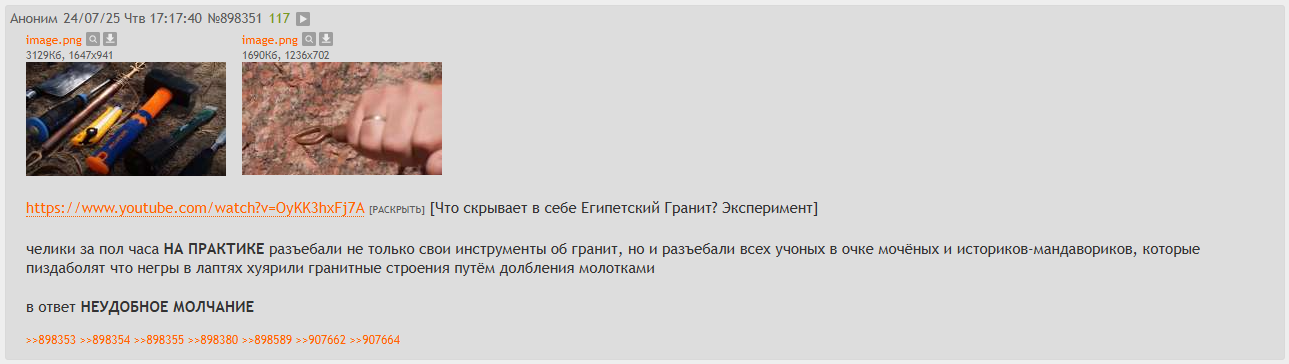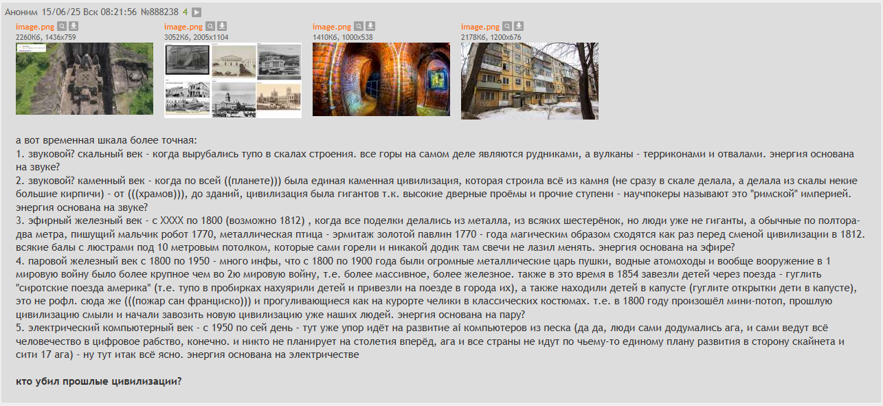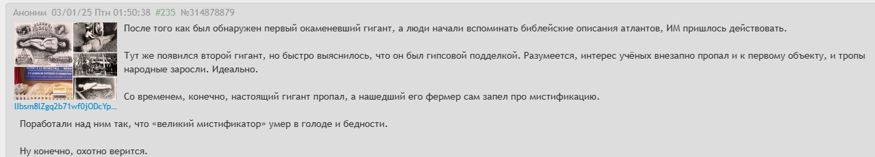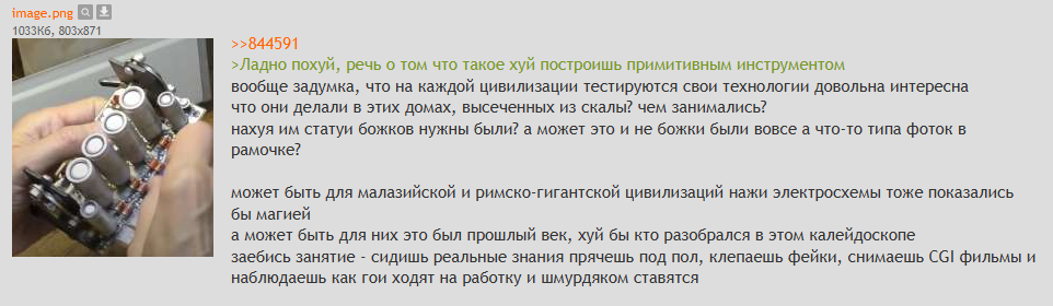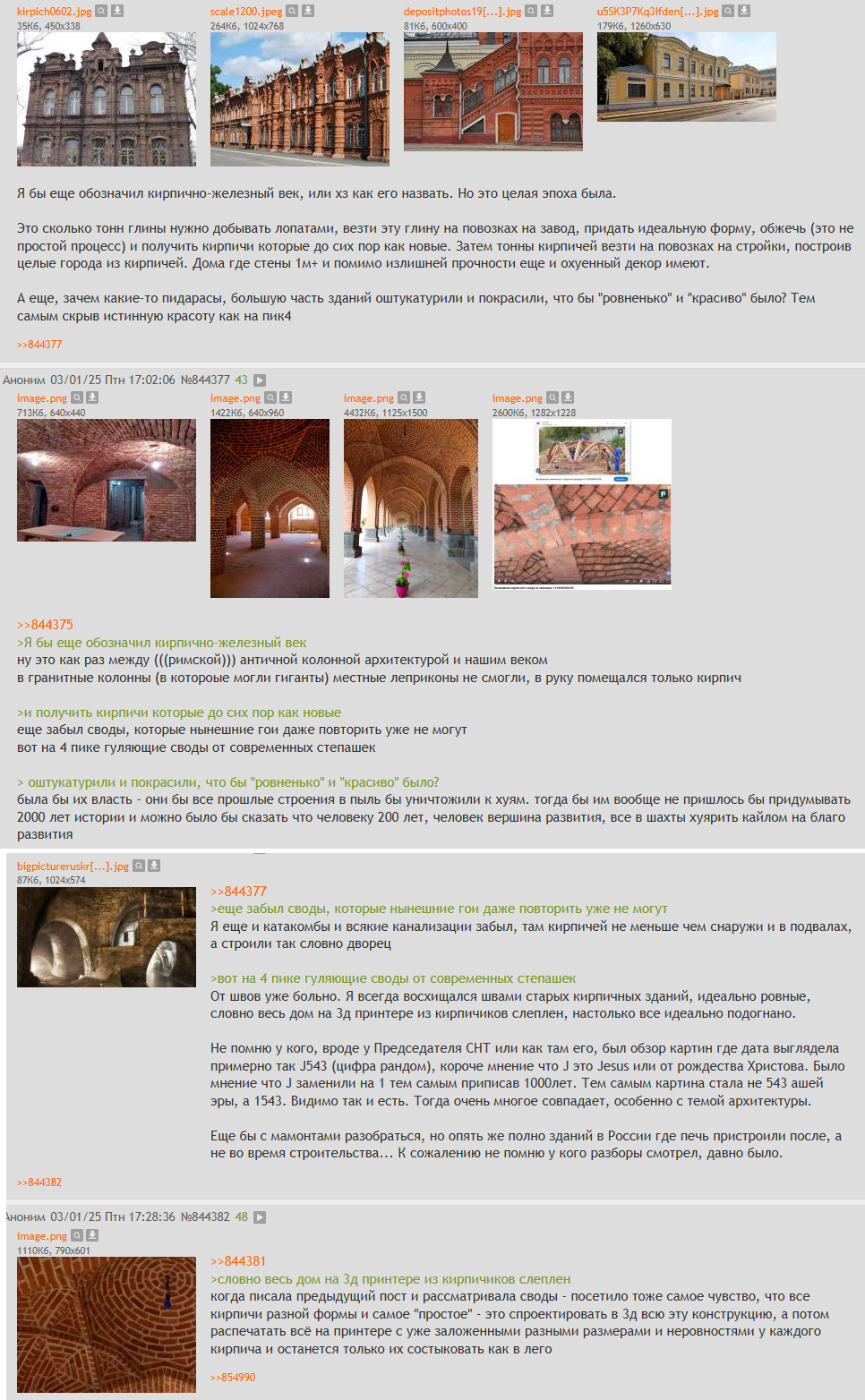 >>925299 >1. Строить могли на старом фундаменте Пруфов бы. На чертеже политеха все эти цокольные этажи видны. >2. Был дом имени Ерохина, а стал домом имени Сычева (тоже путаница с датами происходит) Опять же, пруфай. Здание политеха конца 19 века, почему-то раньше о нем никто не писал. >Я однажды на доме видел масонский символ, зашел во внутрь спросить какого года дом? Мне ответили - дом 19века, но вот ЭТА стена 16века. Это где? «Масонские» символы был повсюду в России вплоть до середины 19 века. В Питере всё в этих глазастых треугольниках. >>925307 >А, и напомню, вот эти карты, это даже не 1% того, что вызывает вопросы, на которые нет ответов. Я пояснил про карты уже, читать не умеешь? >Если сложить все воедино - мегалиты, пирамиды, вообще все древние огромные строения, карты где много воды, засыпанные этажи, города в скалах, обугленные города, не стыковки с датами, окаменелости, отсутствие лесов, скачок археологии в 18-19веке (словно знали где копать) и многое-многое другое, то как можно верить оф. истории после всего этого? Учитывая что историки сами в своих показаниях путаются и меняют даты постоянно... Ну вот и вся причина по которой этот цеховой вброс и делался: скрыть постройку мегалитов, стонгенджей, пирамид, и прочей «древней» хуеты в 17-20 веках. Теперь для людей, которые стали о чем-то задумываться, приберегли цеховую хуцпу про инопланетян/древние цивилизации/потопы/ядерные войны.